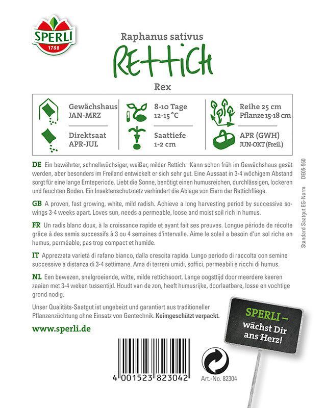 Sperli Sperli Rettich Rex, besonders schnellwüchsige und im Erwerbsanbau bestens
