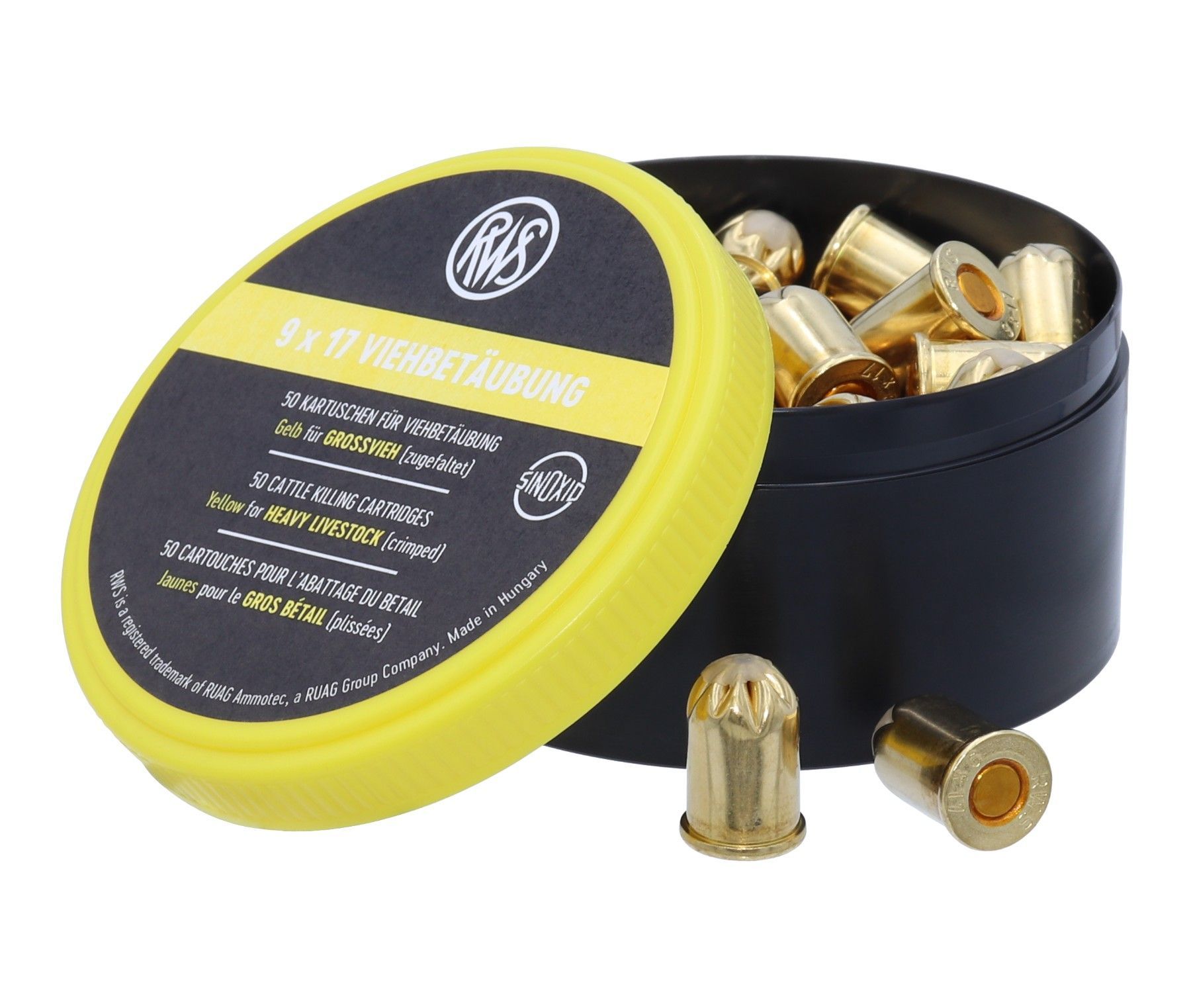 Spezialkartuschen Kaliber 9x17 gelb, Platzkartuschen für Schussfallen - 50 Stück