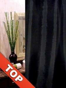 Duschvorhang in der edlen Farbe schwarz mit schwarzen Ösen und schwarzen Ringen 240 cm breit 230 cm hoch Perfekt für hohe Decken geeignet Merkmale waschbar bis 40 Bügelbar 100% Polyester Beschwerungsband am unterem Saum eingearbeitet inkl. 14 schwarze Qualitätsringe eingearbeitete schwarze Kunststof