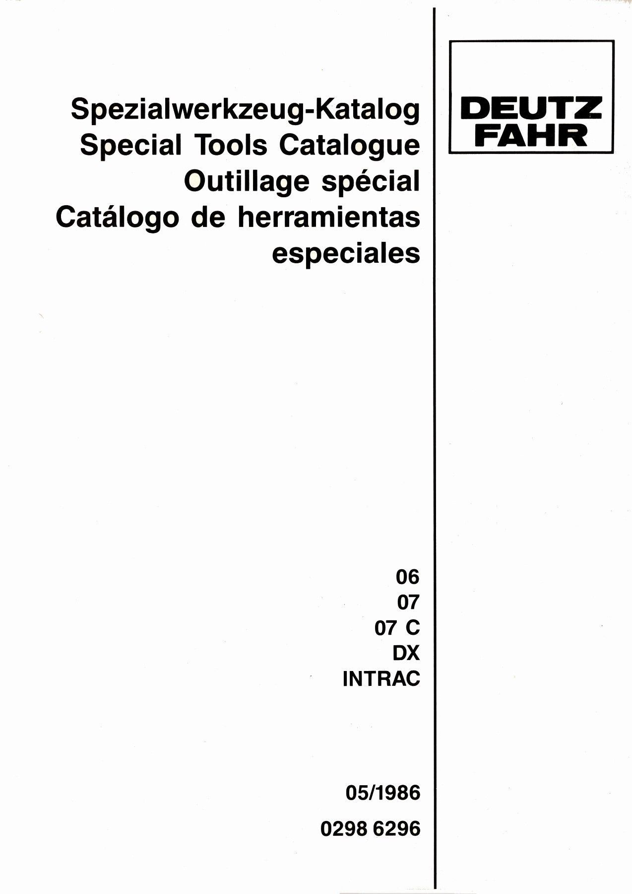 Spezialwerkzeug Katalog Deutz Fahr 06, 07, 07C, DX, Intrac