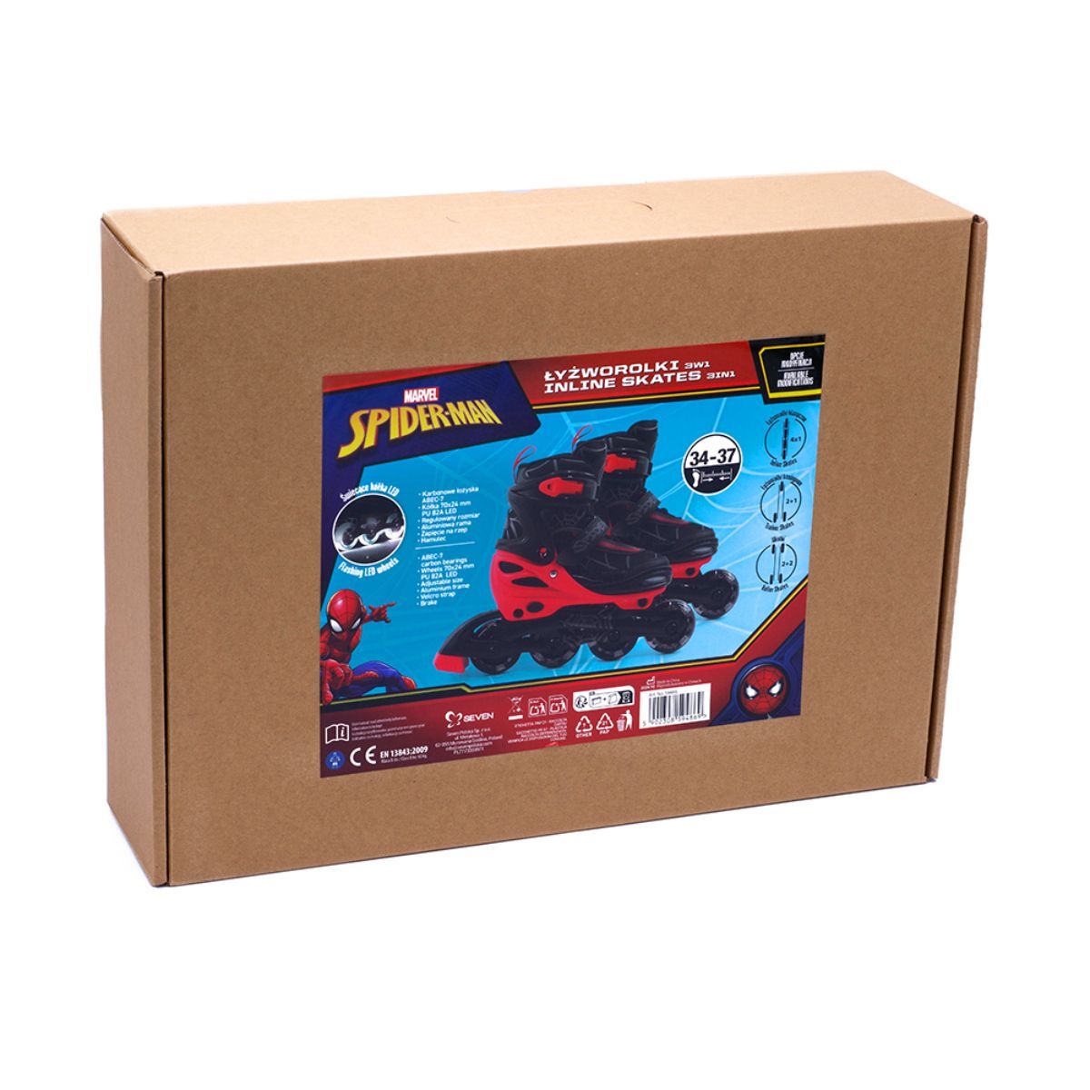Spider-Man Kinder Rollschuhe mit LED – 3in1 Inline Skates für Jungen & Mädchen