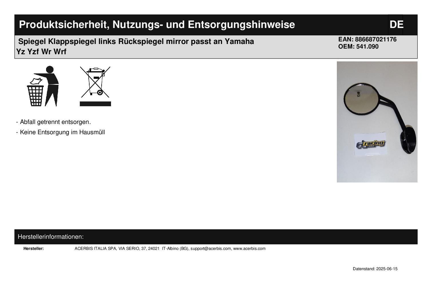 Acerbis Spiegel Klappspiegel links Rückspiegel mirror passt an Yamaha Yz Yzf Wr Wrf