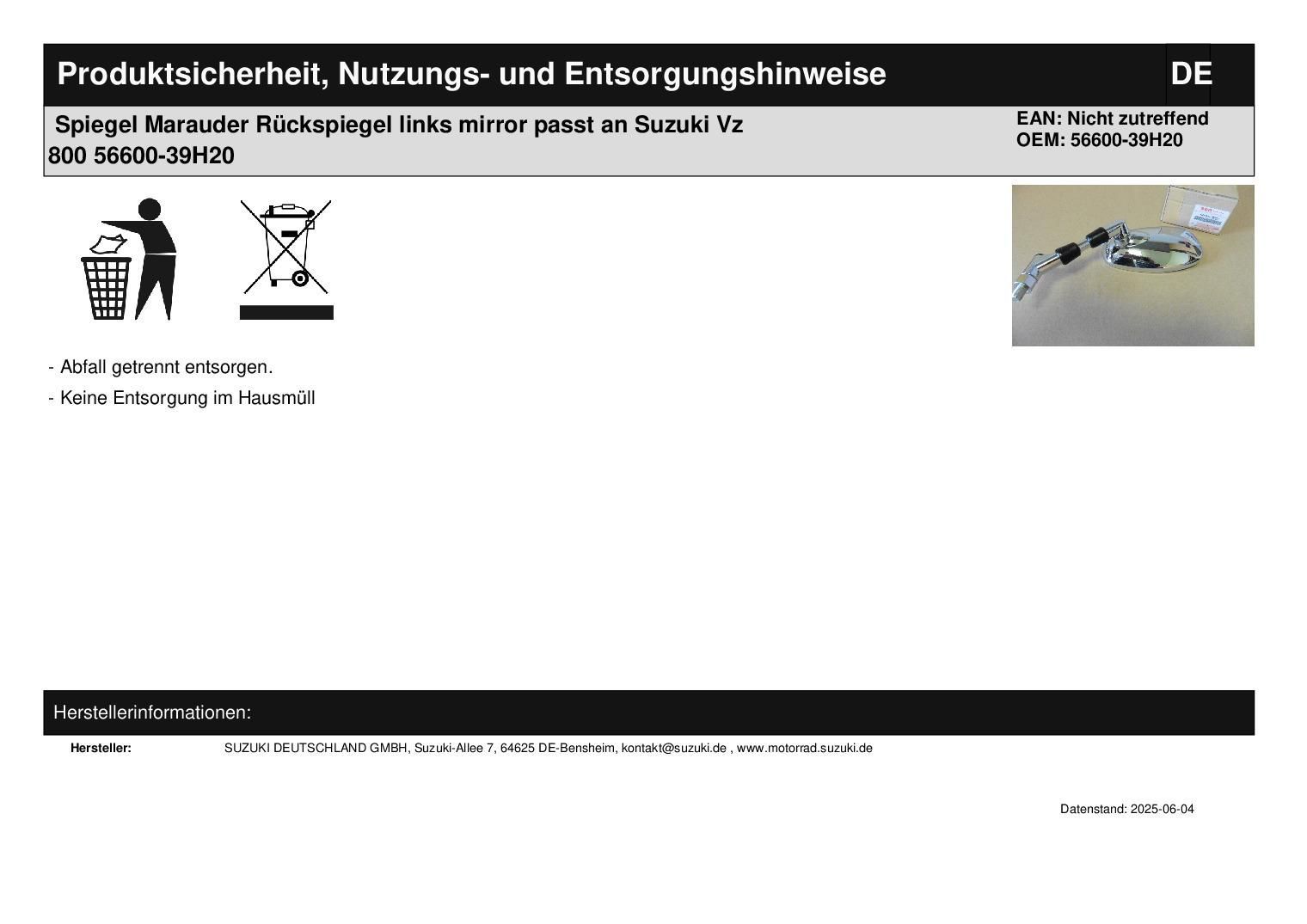 Spiegel Marauder Rückspiegel links mirror passt an Suzuki Vz 800 56600-39H20