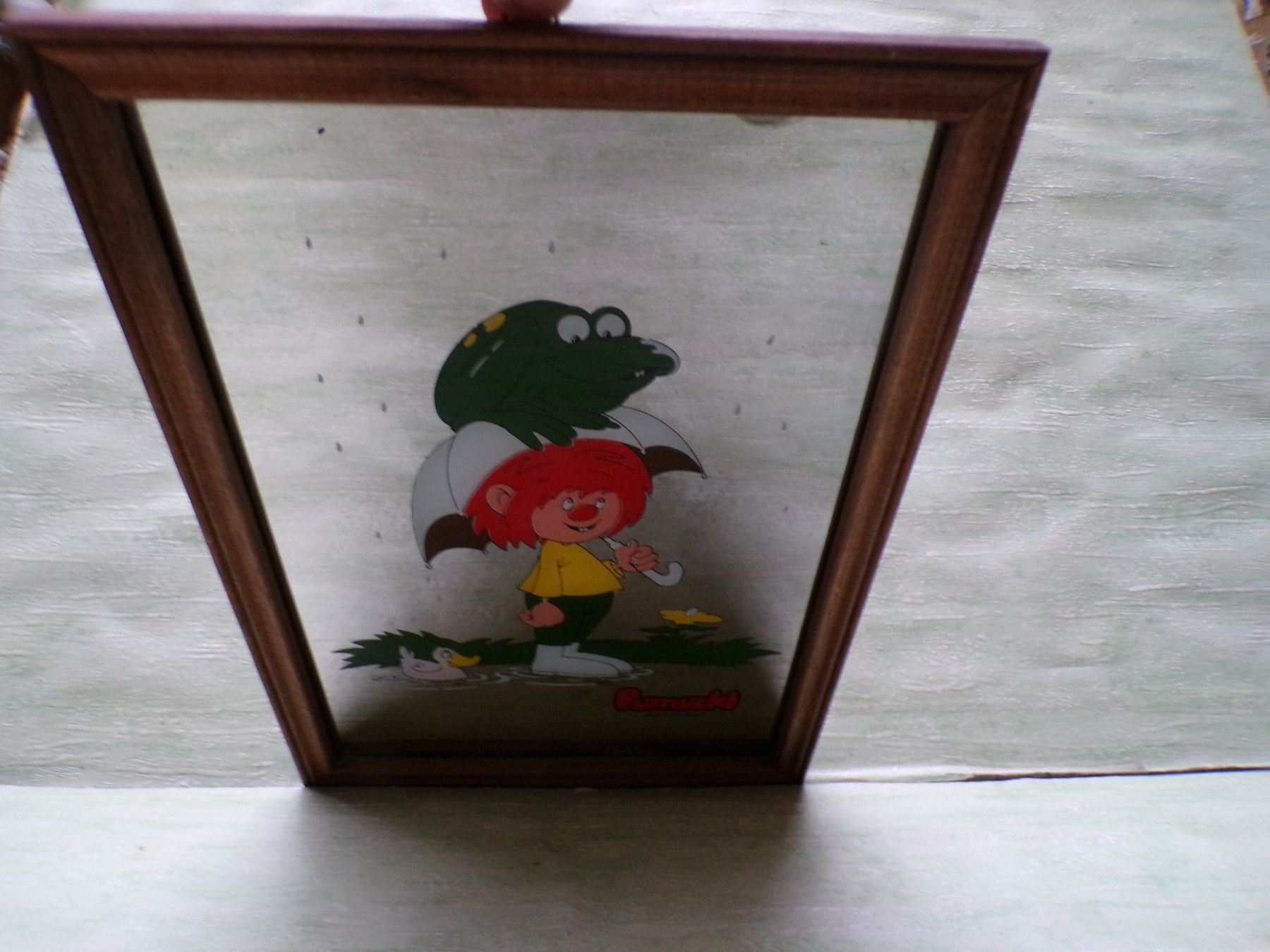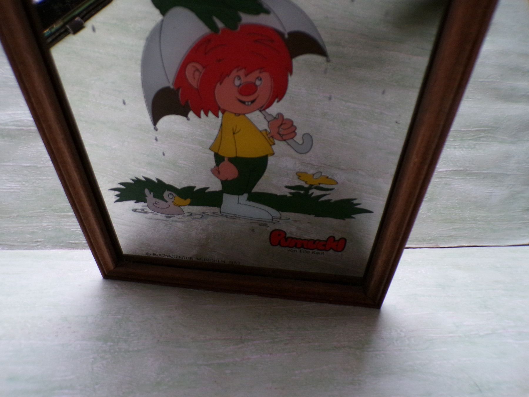Spiegel Pumuckl im Regen Frosch Ellis Kaut 80er 31,5 x 22,5cm