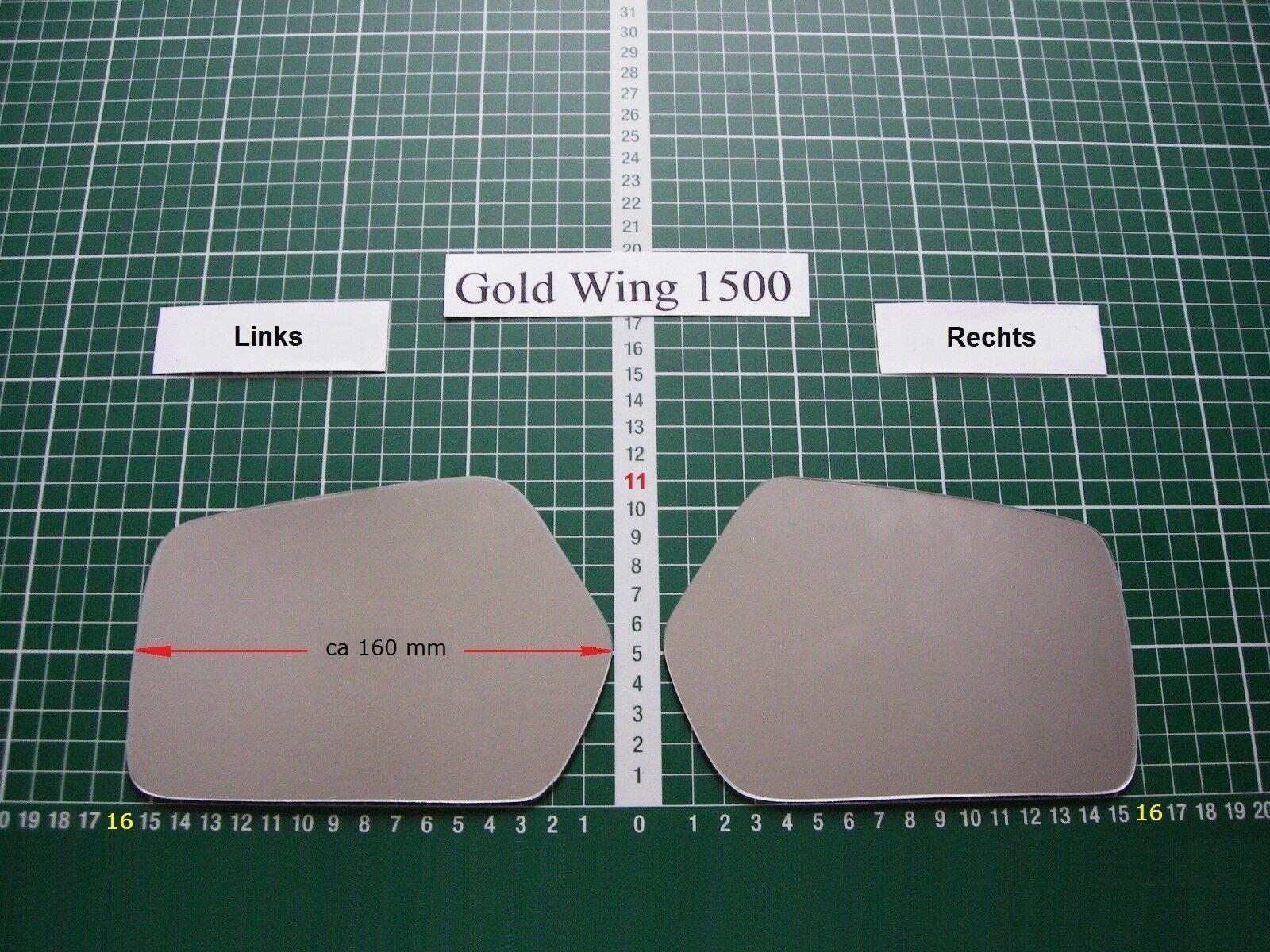 Autospiegelglastechnik Wir bieten ein Spiegelglas Ersatzglas für Motorrad Honda Gold Wing - 1500 Achtung; Grosse Ersatzglas ca 160 mm Breit. Unsere Hood Bild bitte vergrossern und vergleichen Vor ihrer Kaufentscheidung vergleichen Sie bitte die Maßen und entscheiden Sie dann bitte erst ob Sie den Ar