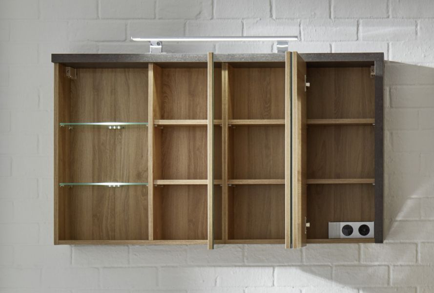 Trendteam Spiegelschrank 3-türig Eiche Riviera Honig grau Beton 120 cm Badezimmer Spiegel Bay