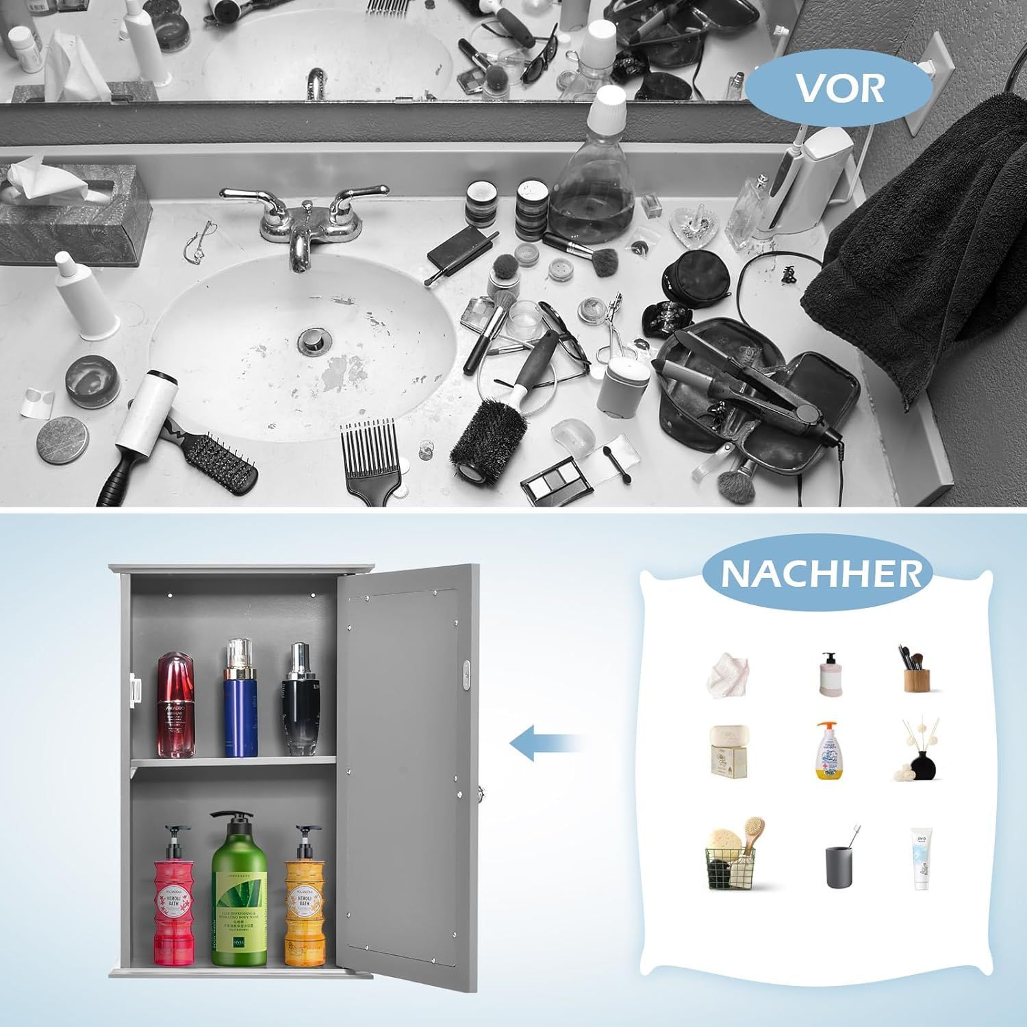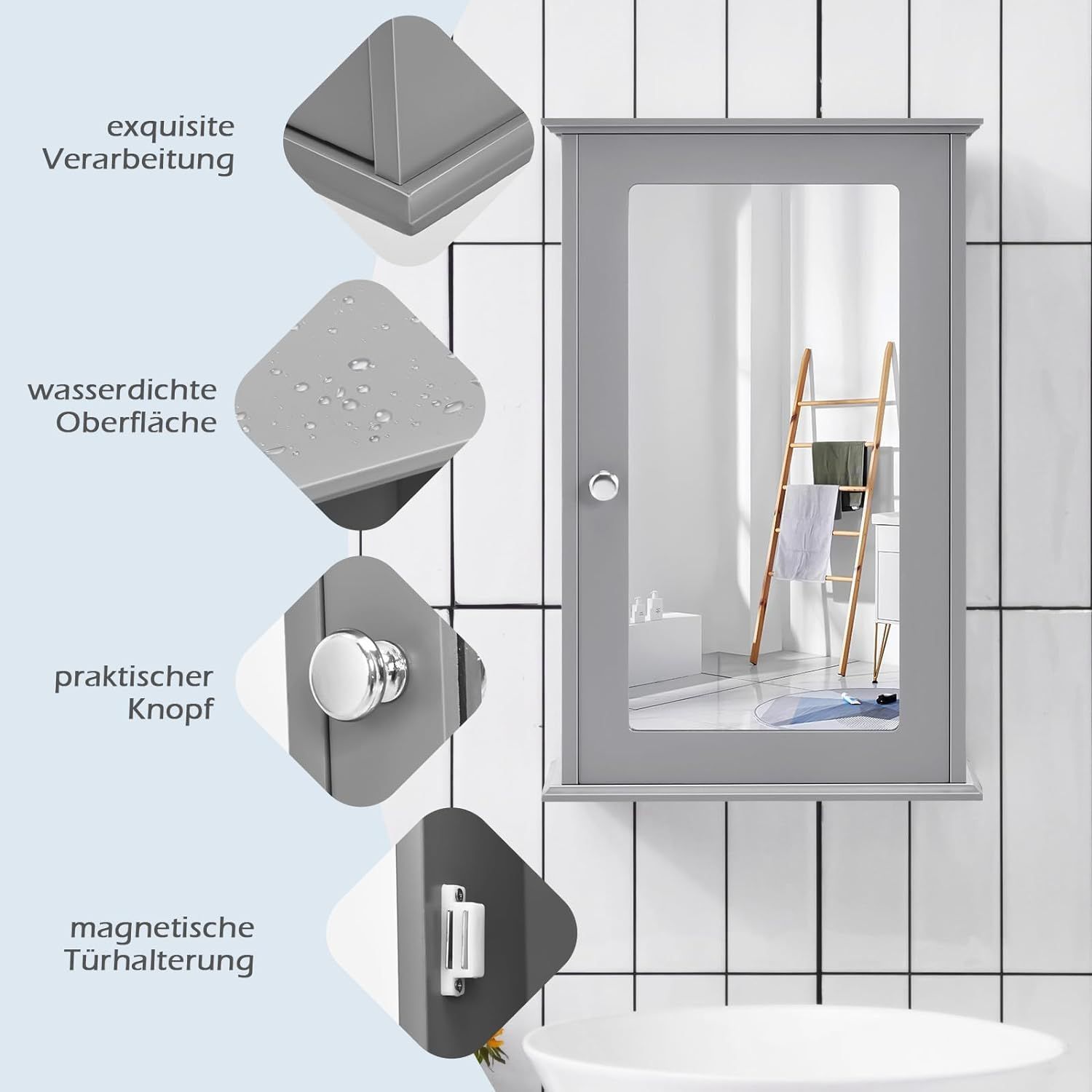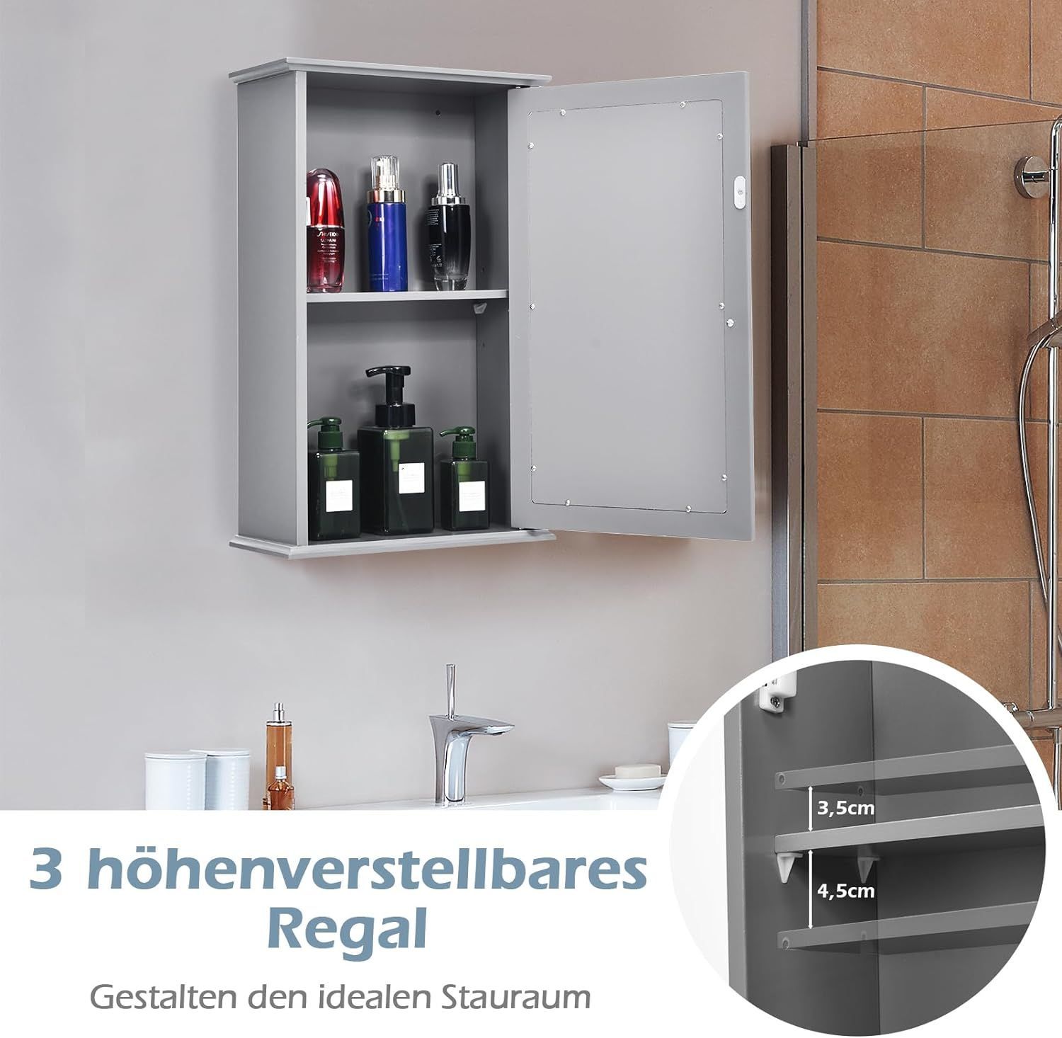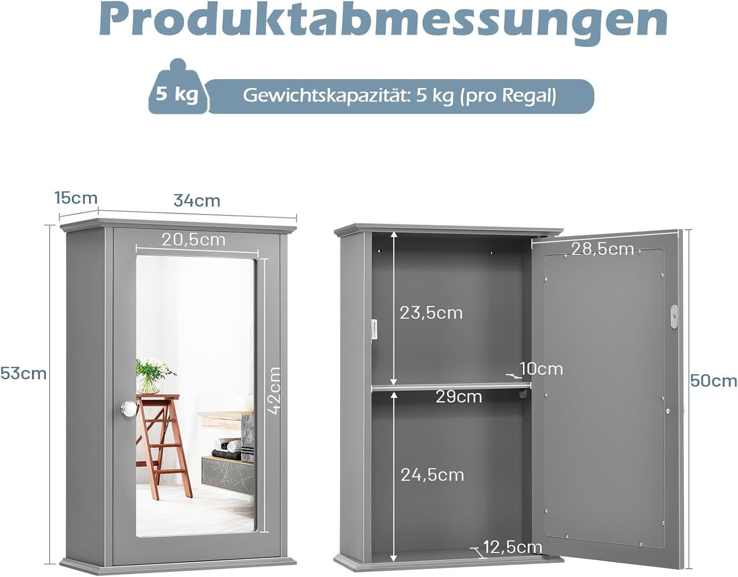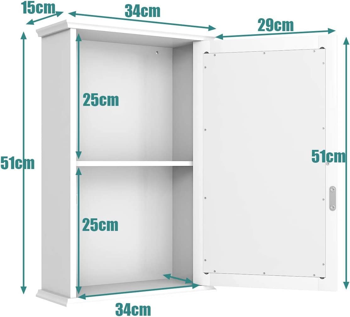 Spiegelschrank Bad, 2-stöckiger Hängeschrank mit Spiegel, Wandschrank aus Holz