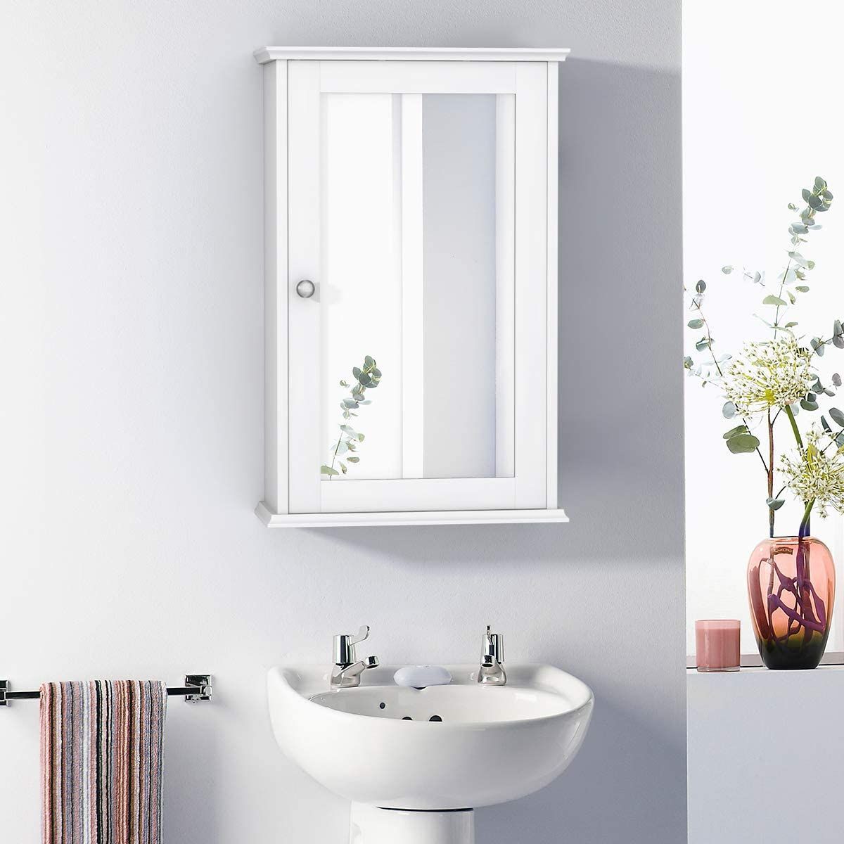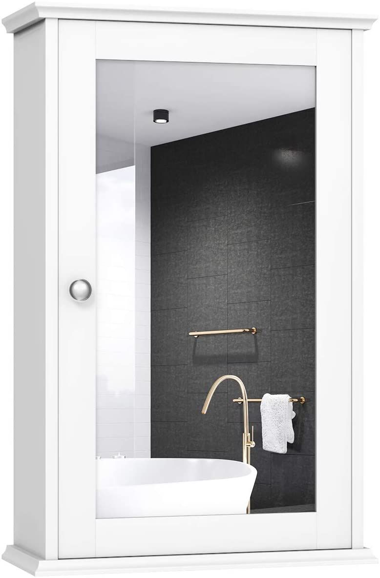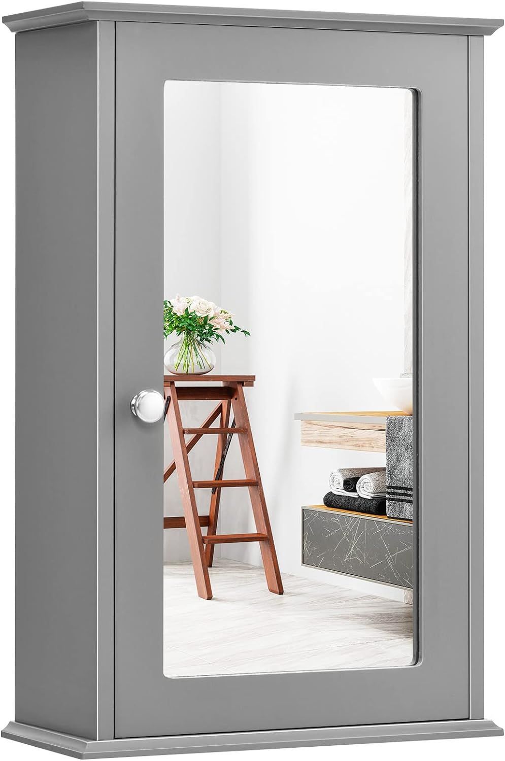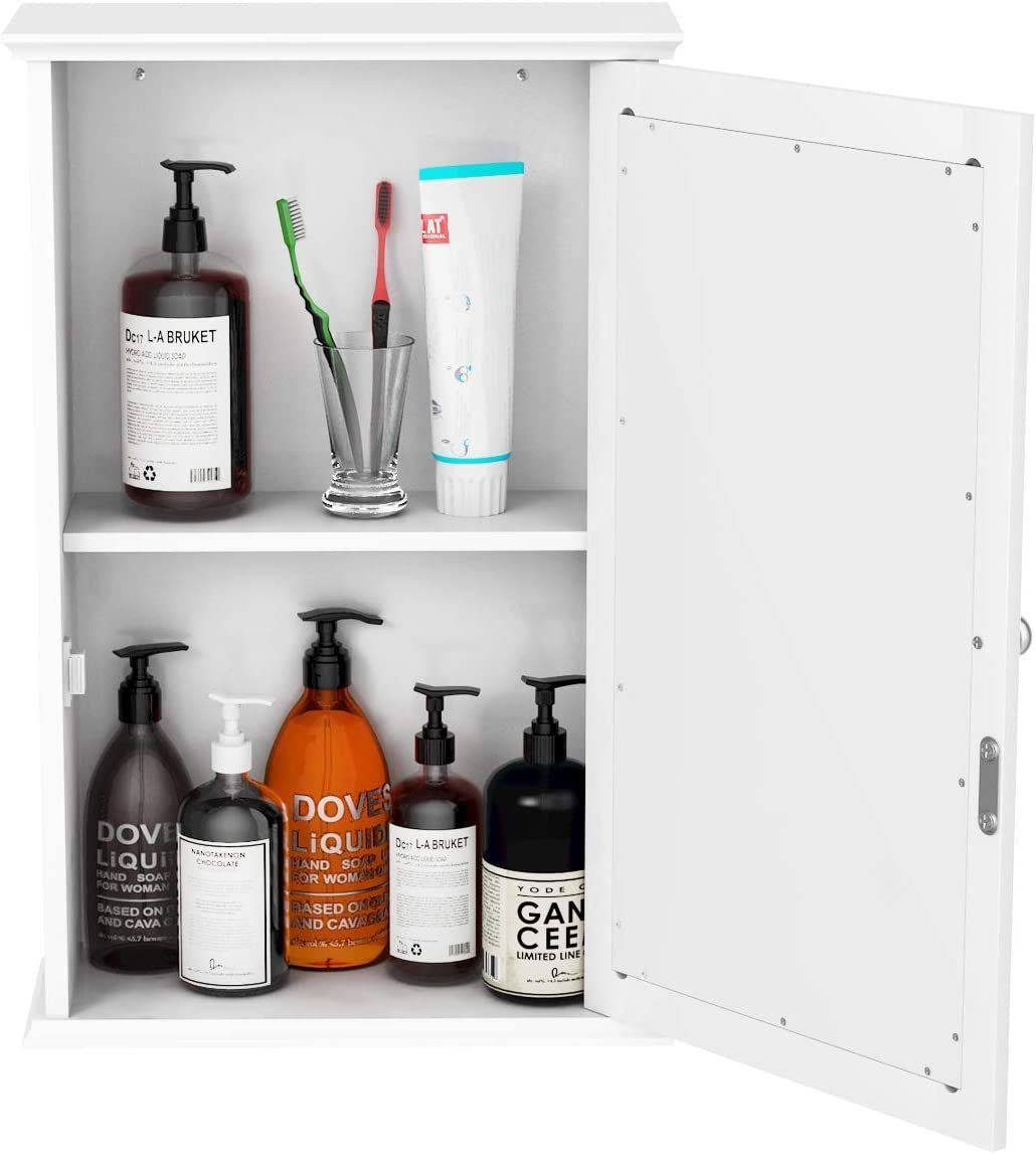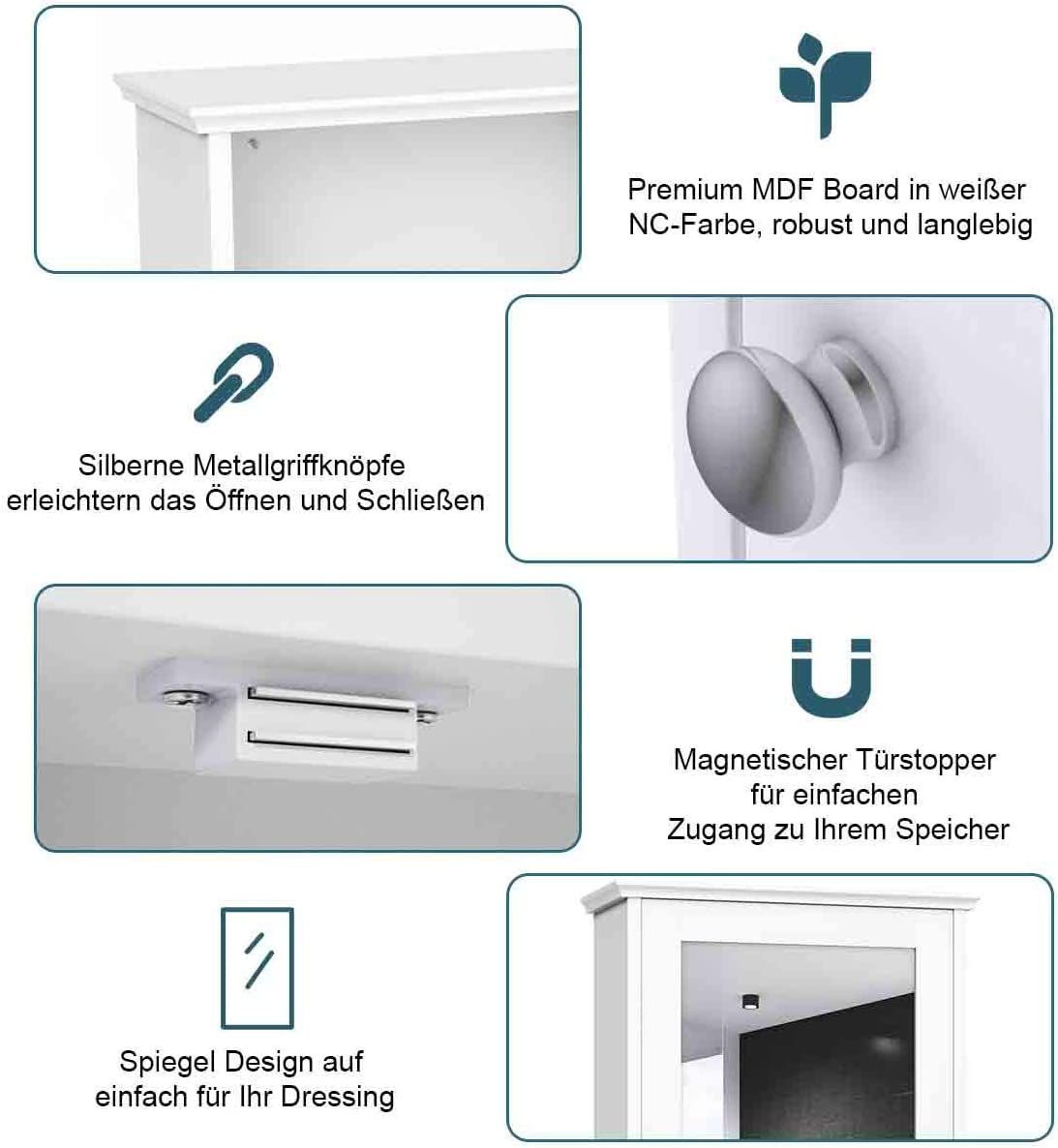 Spiegelschrank Bad, 2-stöckiger Hängeschrank mit Spiegel, Wandschrank aus Holz