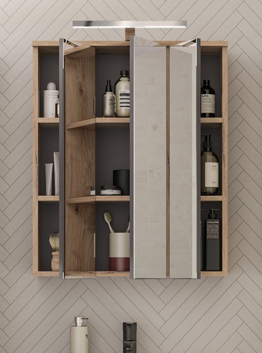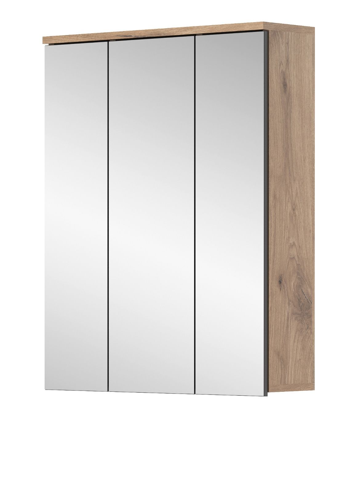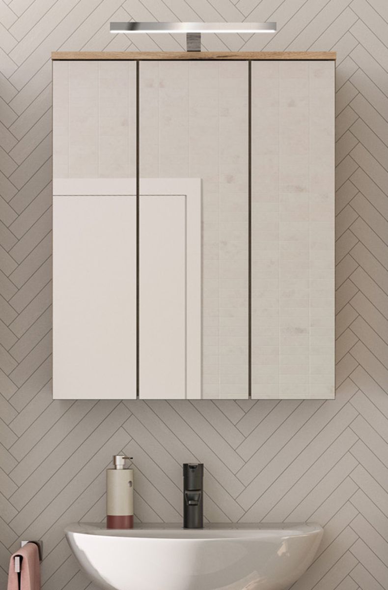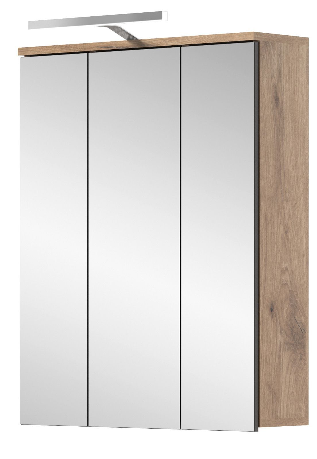 Spiegelschrank Bad Schrank Badezimmer Spiegel 3D 60 cm Eiche Beleuchtung Tomaso