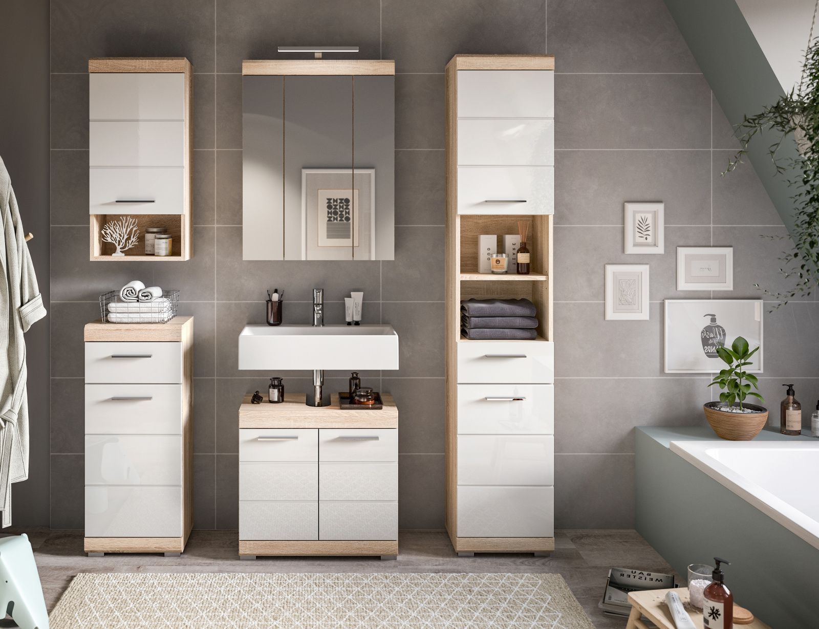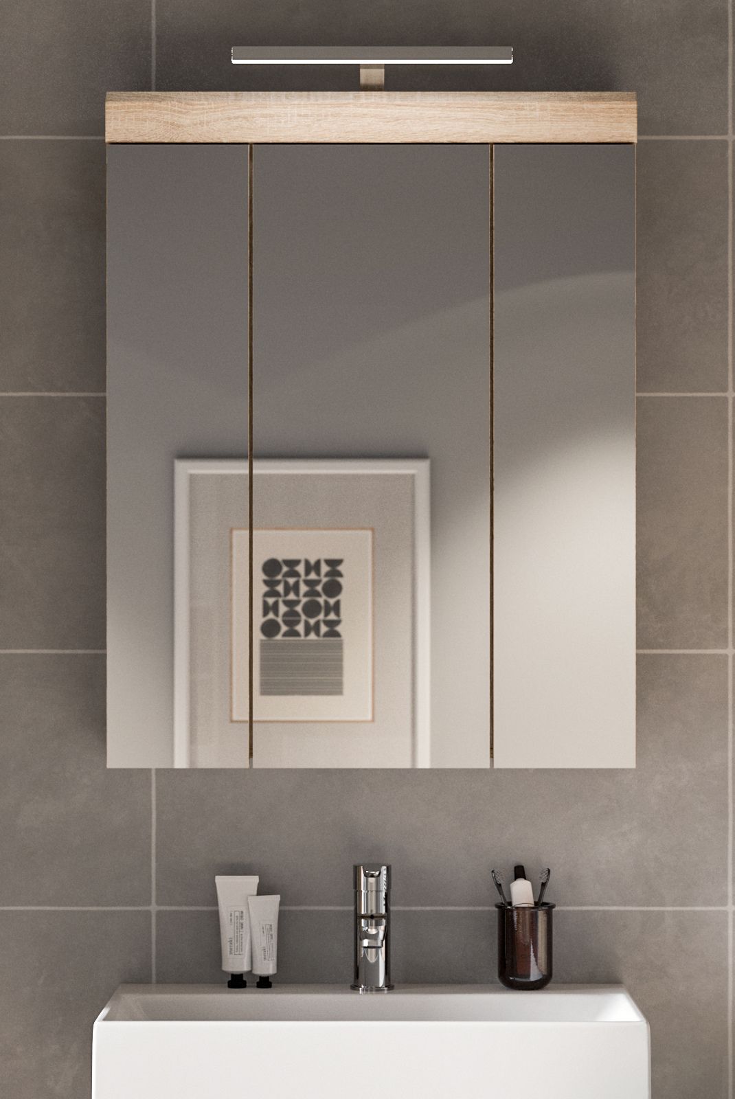 Spiegelschrank Bad Spiegel Eiche Sonoma 60 cm Badezimmer LED Badlampe Mambo