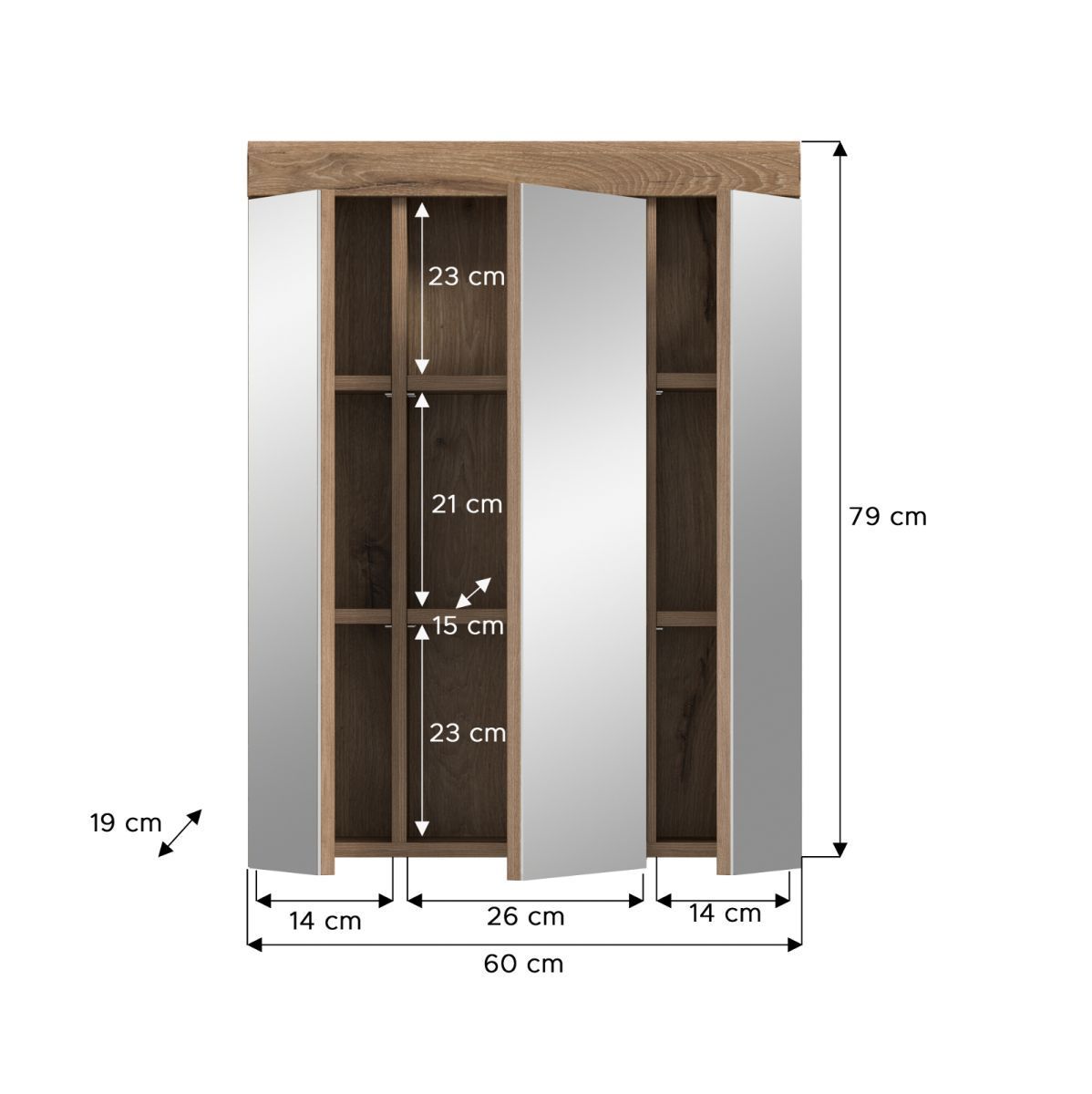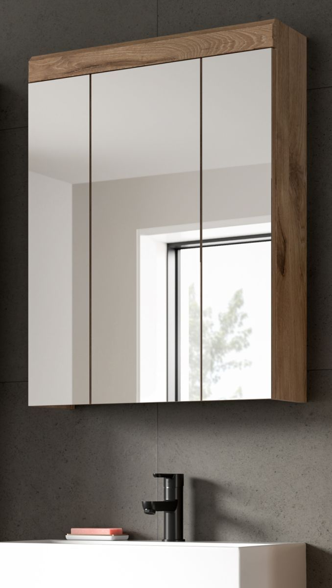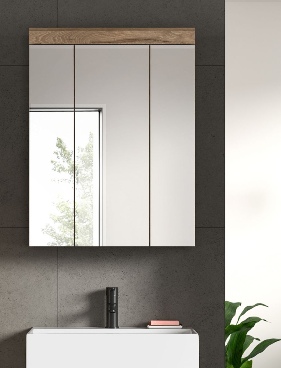 Spiegelschrank Badezimmer Spiegel Schrank Eiche 60 x 79 cm 3-türig Bad Willow