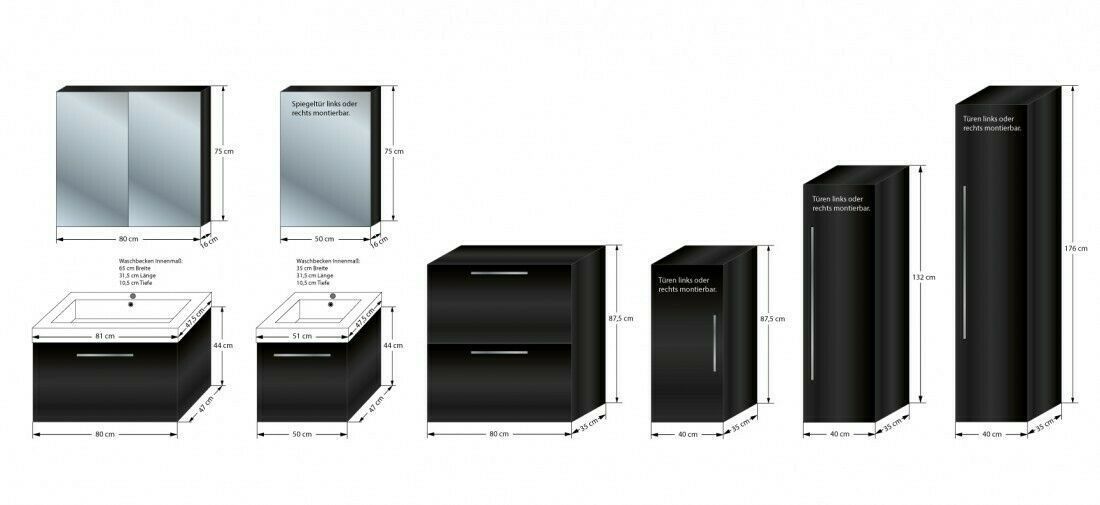 Spiegelschrank Badspiegel Badezimmer Spiegel City 80cm Esche schwarz