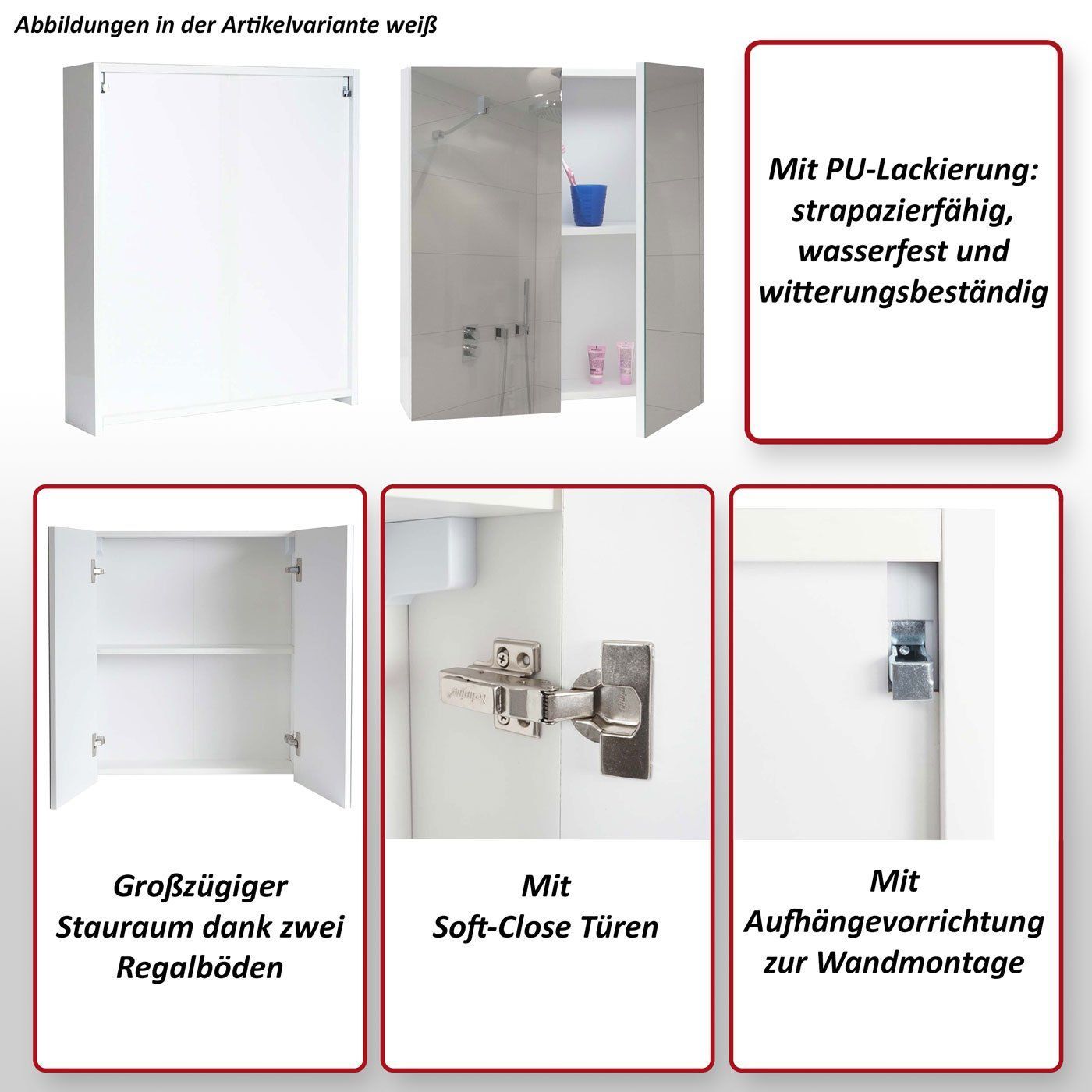 Mendler Spiegelschrank HWC-B19b, Badschrank Hängeschrank, hochglanz Spiegel FSC