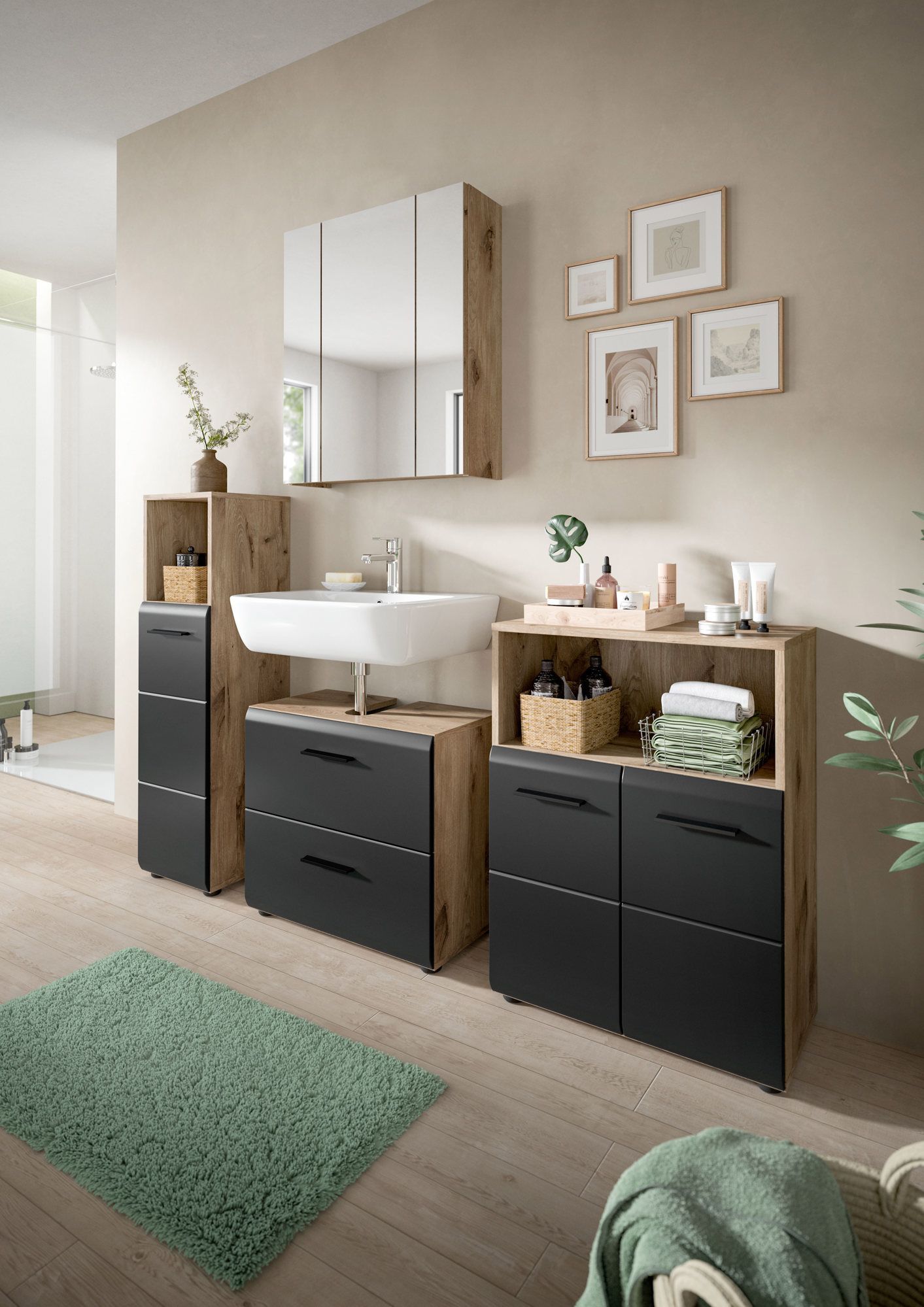 Spiegelschrank in schwarz matt und Nox Oak Nachbildung