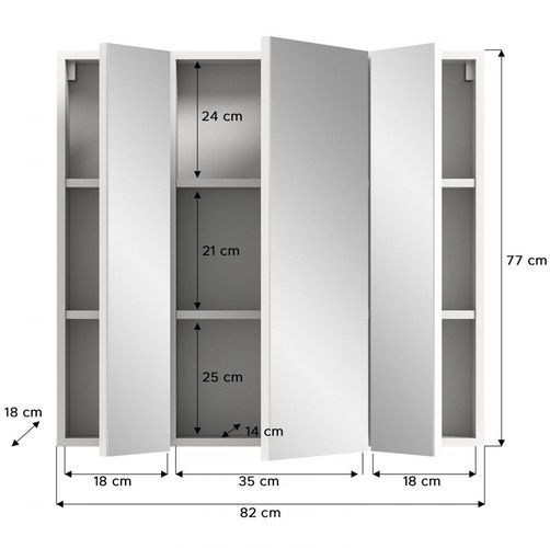 Spiegelschrank weiß Badezimmer Spiegel Schrank 3-türig Larik Badschrank 82 x 77 cm