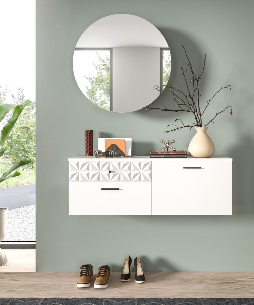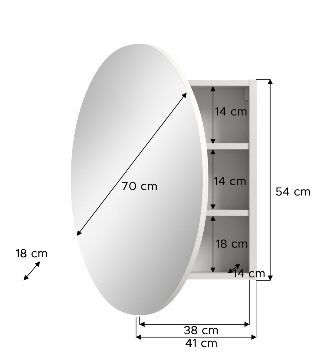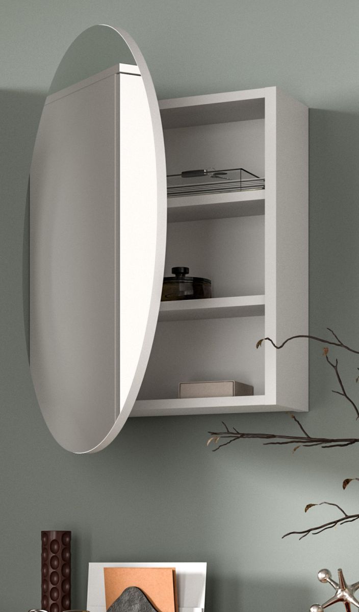 Spiegelschrank weiß Flur Spiegel rund mit Stauraum und Soft-Close Relief 70 cm