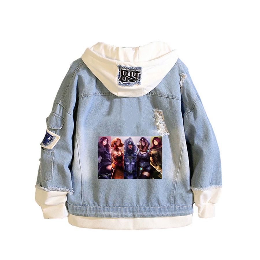 Spiel DOTA Merch Kapuze Mantel Crystal Maiden Lina AXE Hoodie Jeansjacke Sweatshirt