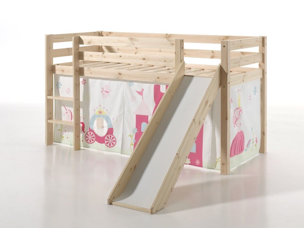 VIPACK Spielbett Hochbett Kinderbett 90x200 Rutsche Vorhang Prinzessin Rosa Holzbett