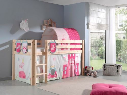 VIPACK Spielbett Hochbett Kinderbett 90x200 Vorhang Prinzessin Rosa Tunnel Holzbett