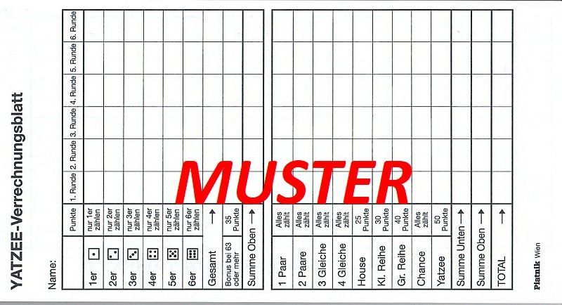 Piatnik Spielblock Eskalero / Yatzee (VPE=1 Block)