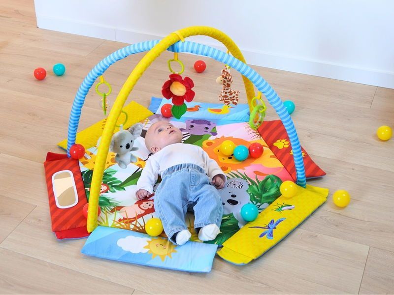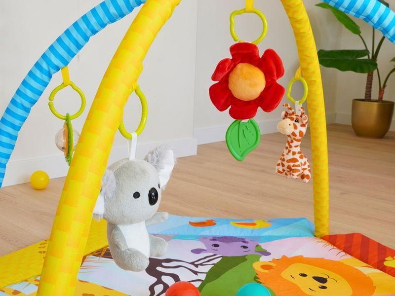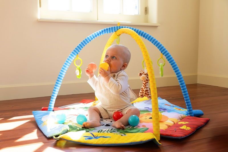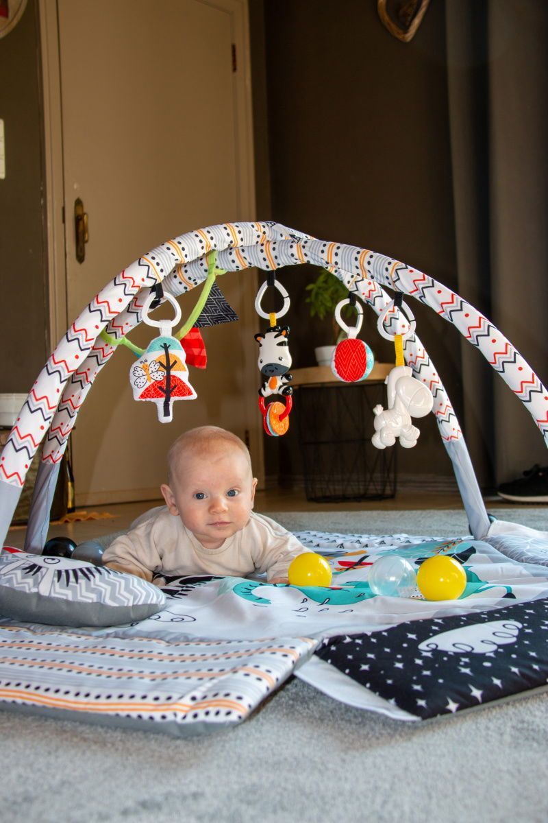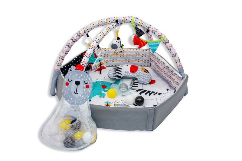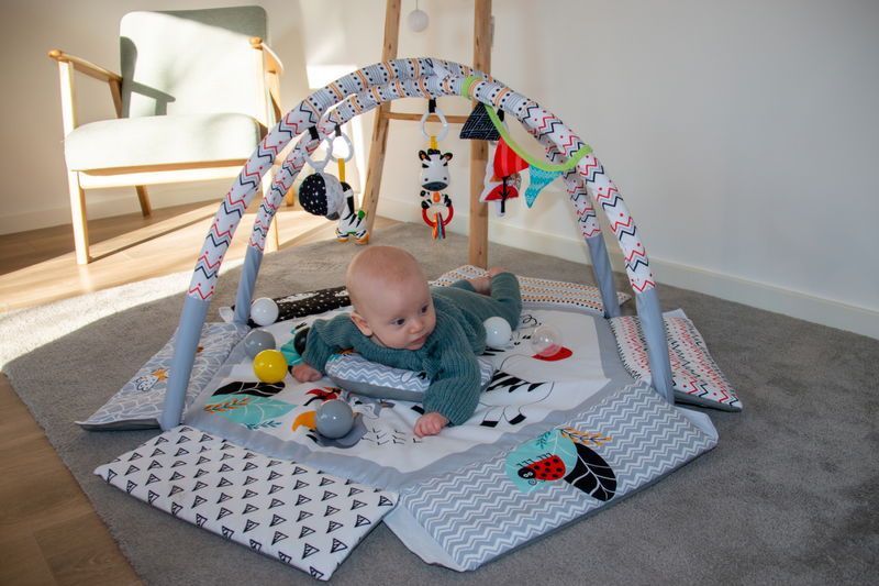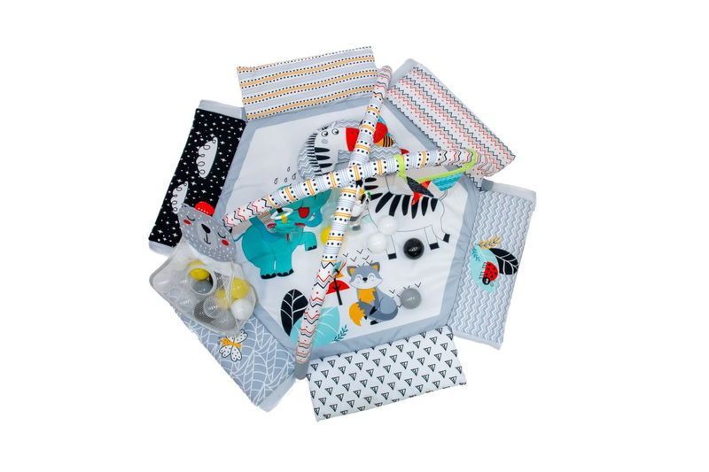 Spieldecke mit Zubehör, grau, Erlebnisdecke, Babymatte ab Geburt, Spielbogen : grau