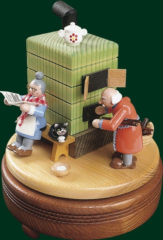 Spieldose Feierabend am Ofen Höhe= 15cm NEU Spieluhr Spielwerk Musik Dose Figur S