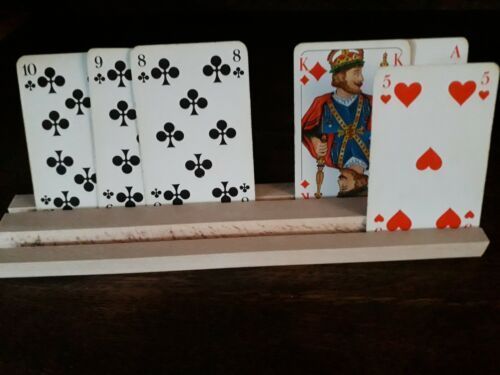 Ideal für Zuhause, für Kinder, Kindergarten, Senioren, Pflegeeinrichtungen, Die Hände frei beim Kartenspielen. Auch sehr schön als Postkarte oder Photoständer. Spielkartenhalter Kartenhalter , 2-rillig, 25 x 4,4 x 2 cm Buchenholz unbehandelt Mit 2 Rillen zum Kartenstecken versehen, also 50 cm Steckm