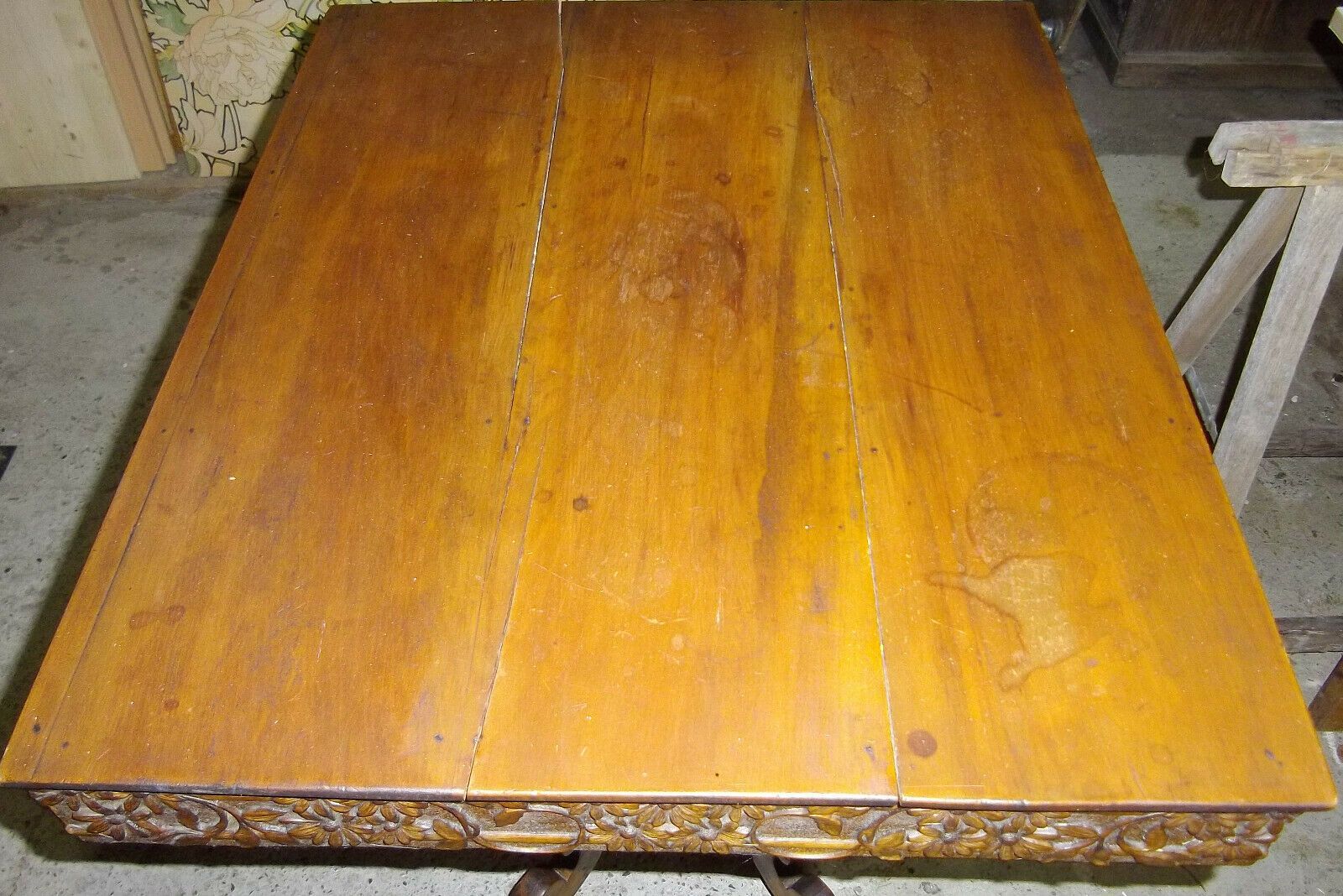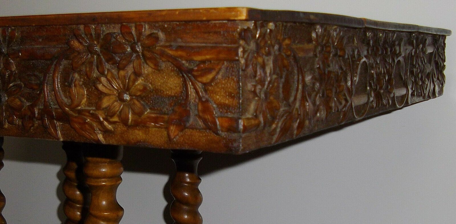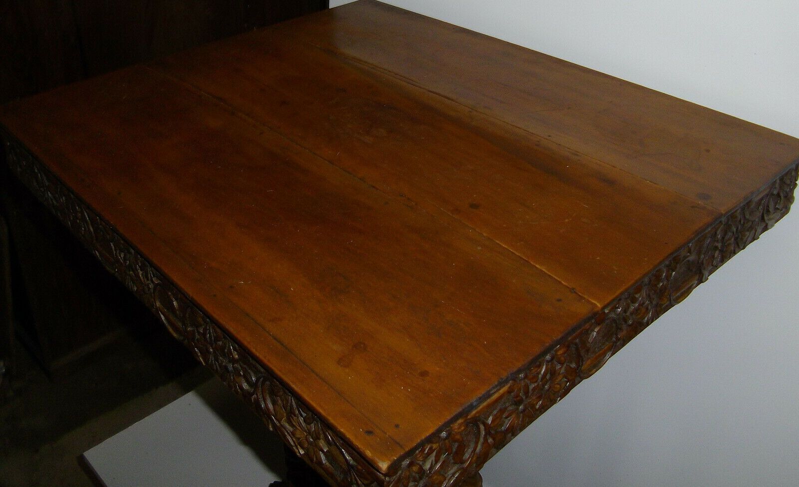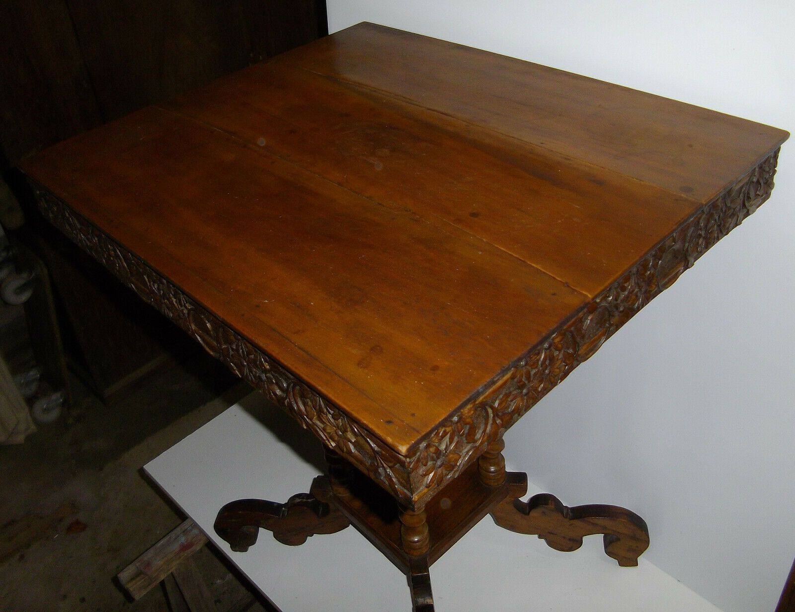 Spieltisch aus Italien um 1820. Material: Nussholz mittel, hand-geschnitzte Zarge. Unter der Platte ein Stauraum für Karten und Würfel. Zwei Risse in der Deckplatte (siehe Foto). Maße: H 83, L 72,5, B 61 cm. Transport mit Spedition möglich (je nach Angebot und Entfernung!). Der angegebene Versandpre
