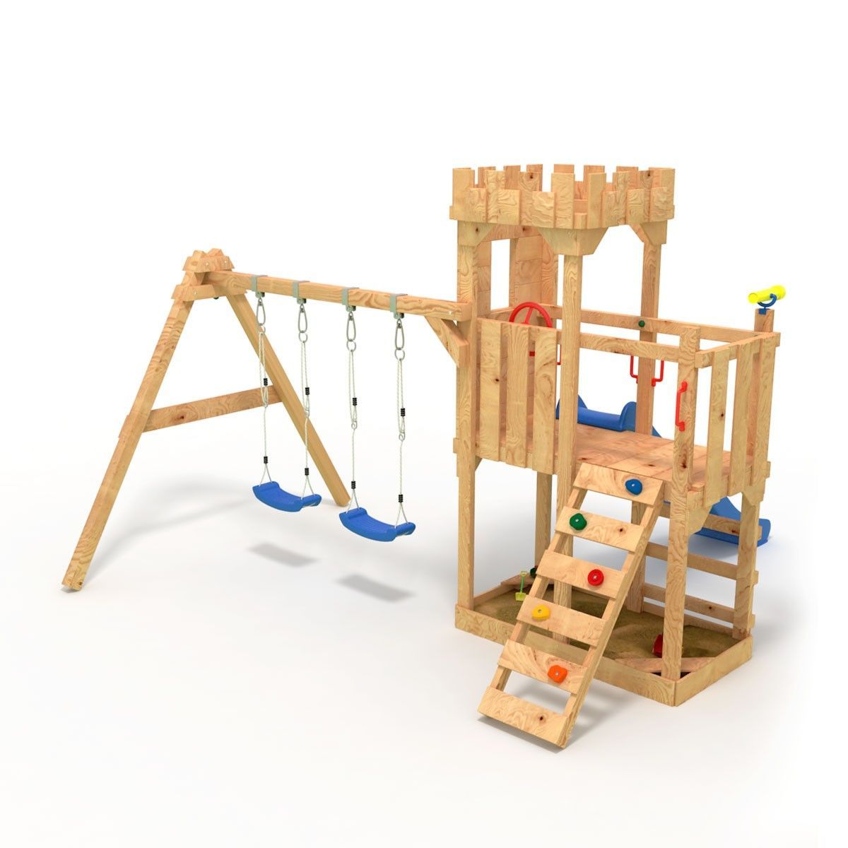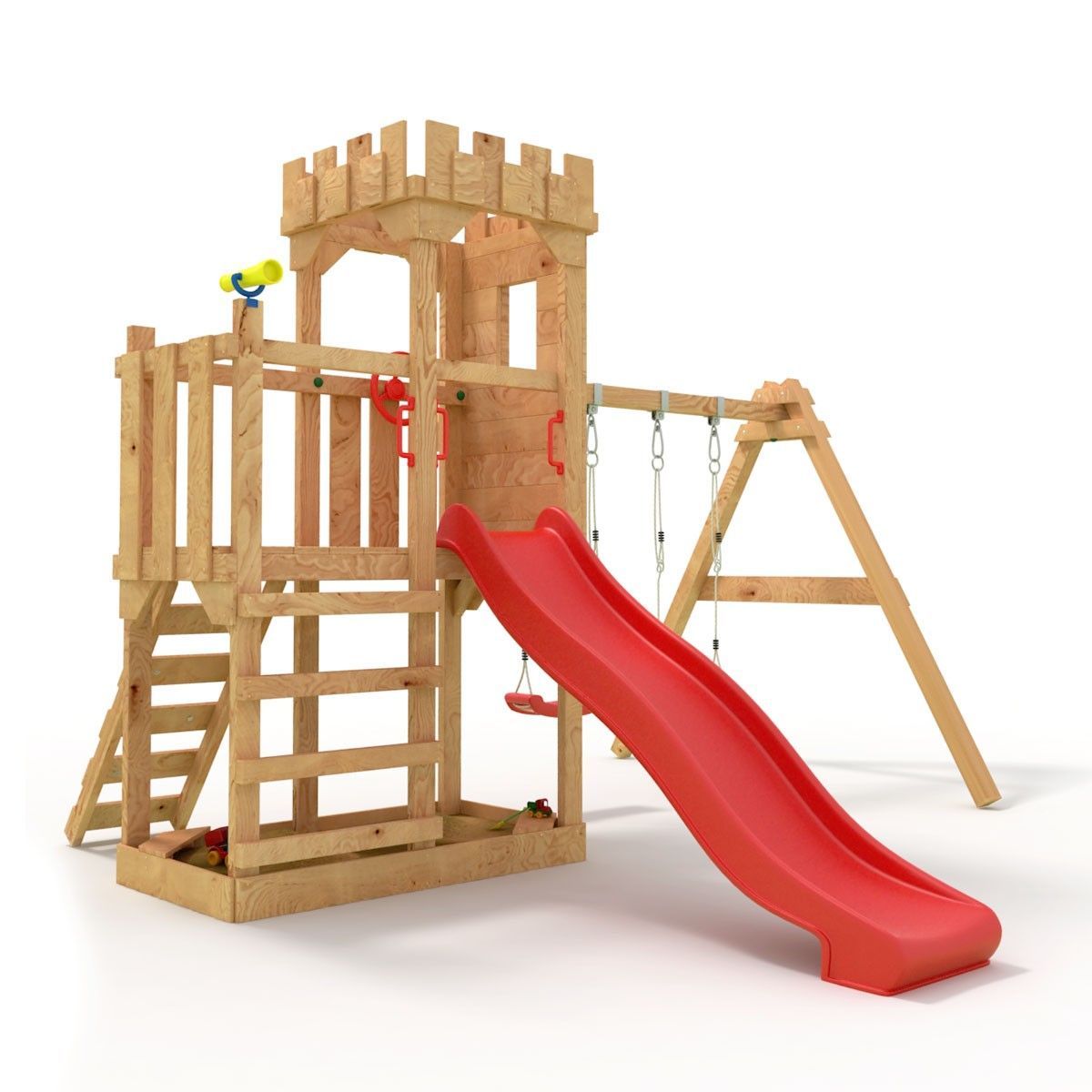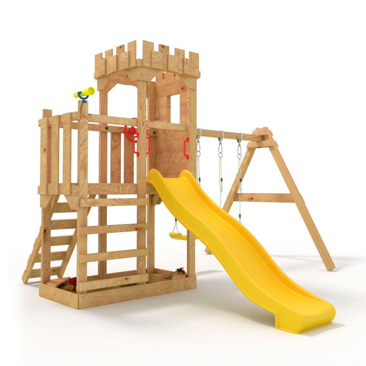 Spielturm - Ritterburg-XL120 (offen) - Kletterturm, Rutsche, Schaukel, Sandkasten