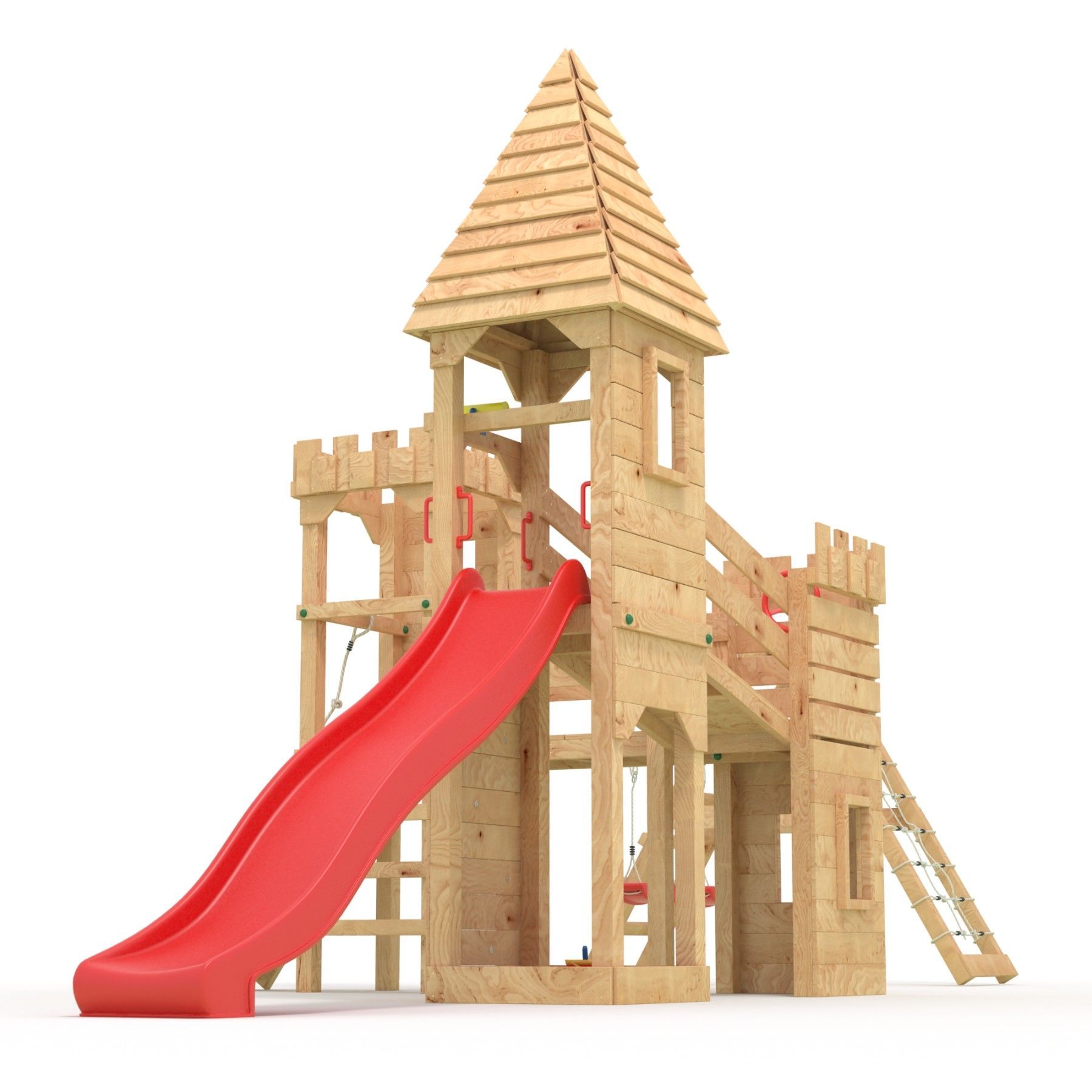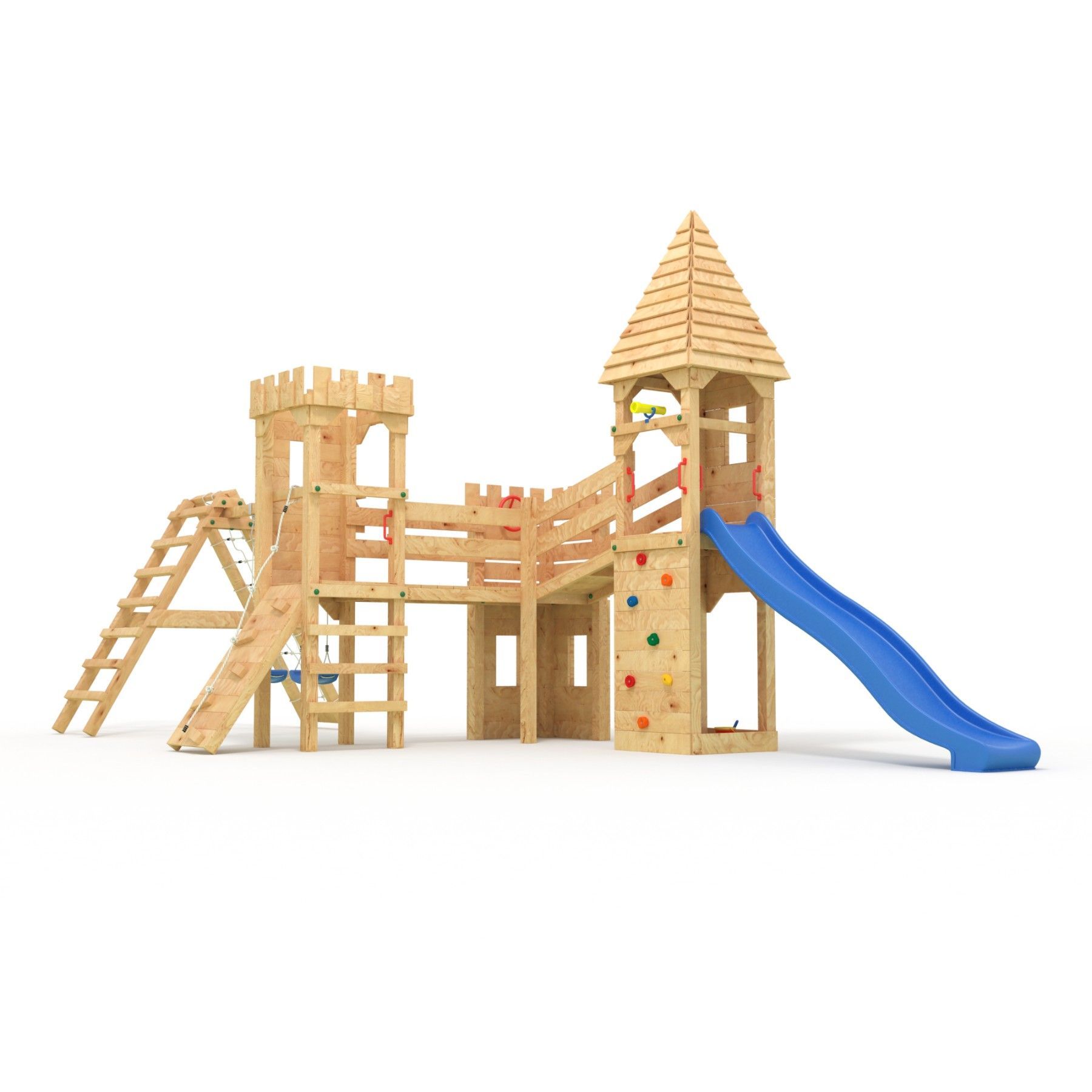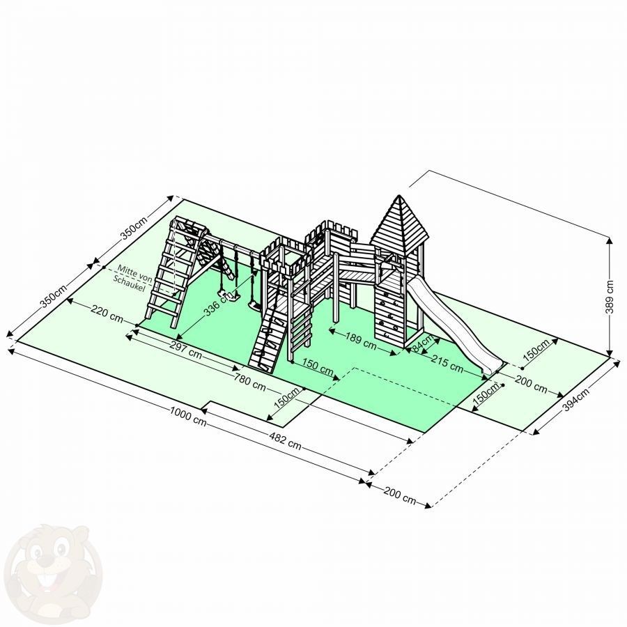 Spielturm - Ritterburg "XXL 150" - 3x Klettertürme, lange Rutsche, Doppelschaukel