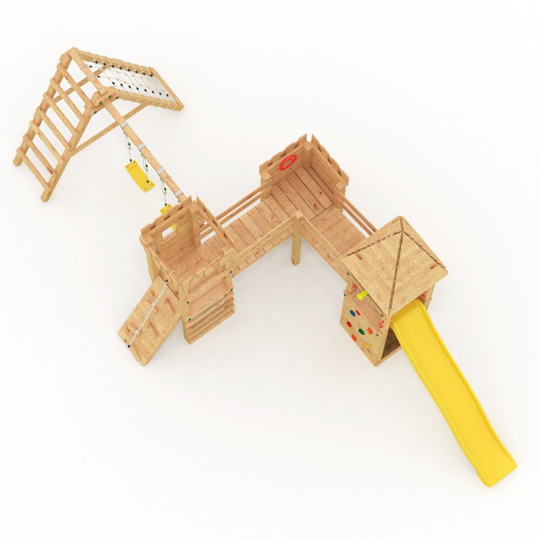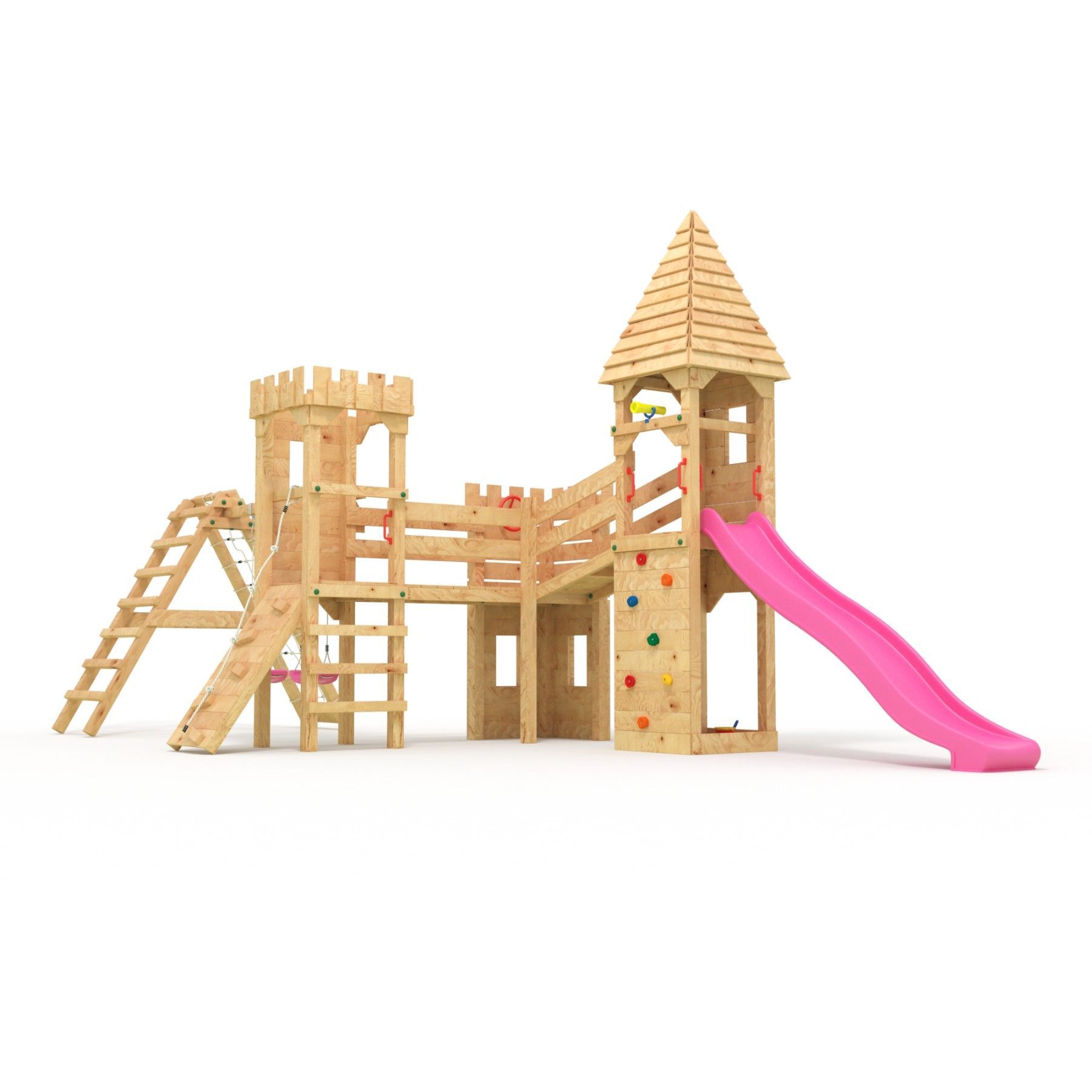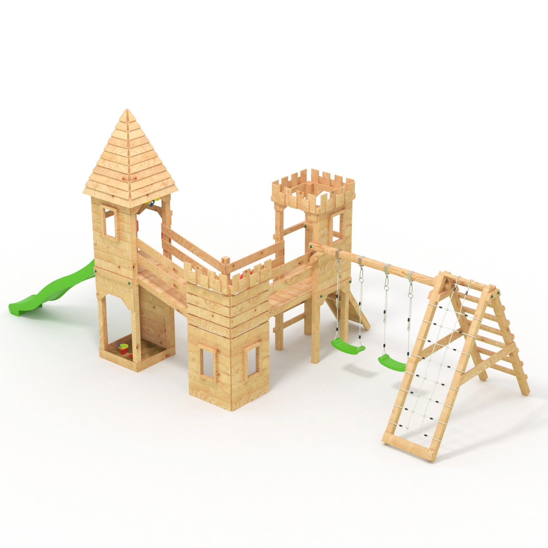 Spielturm - Ritterburg "XXL 150" - 3x Klettertürme, lange Rutsche, Doppelschaukel