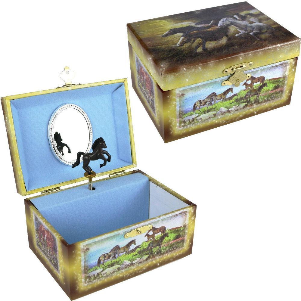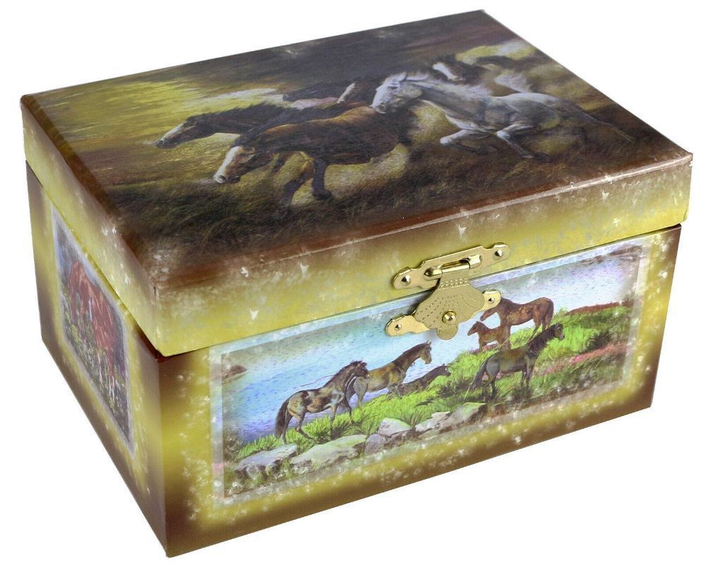 Spieluhr Schmuckkästchen Wildpferde Schmuckdose Pferde mit Melodie Bruder Jacob
