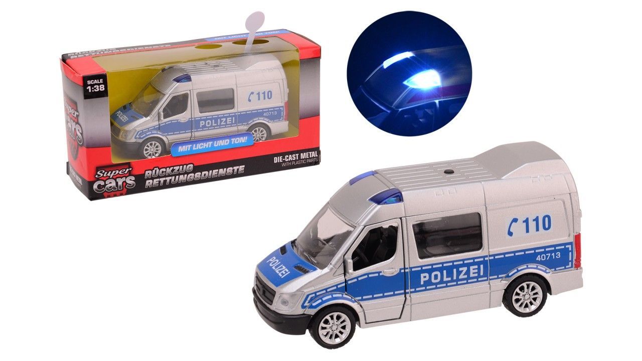 Johntoy Spielzeugauto - Polizeibus mit Blaulicht, Sound und Rückzugsmotor