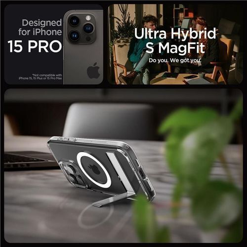 Spigen Ultra Hybrid S MagSafe Hülle mit Standfuß für iPhone 15 Pro - transparent