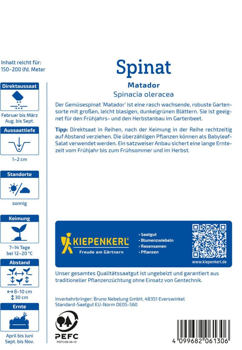 Kiepenkerl Spinat Matador Vorteilspackung, großblättriger Gemüsespinat - Frühjahrs- und