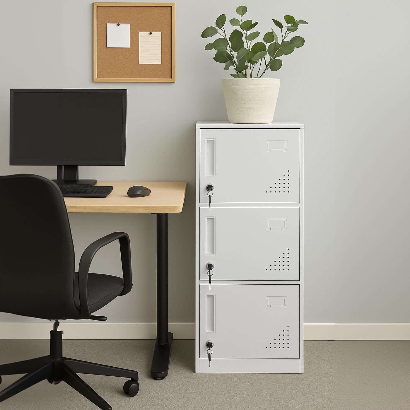 Mendler Spind HWC-P63, Schließfach Schließfachschrank 3 Türen, 90x38x45cm Stahl