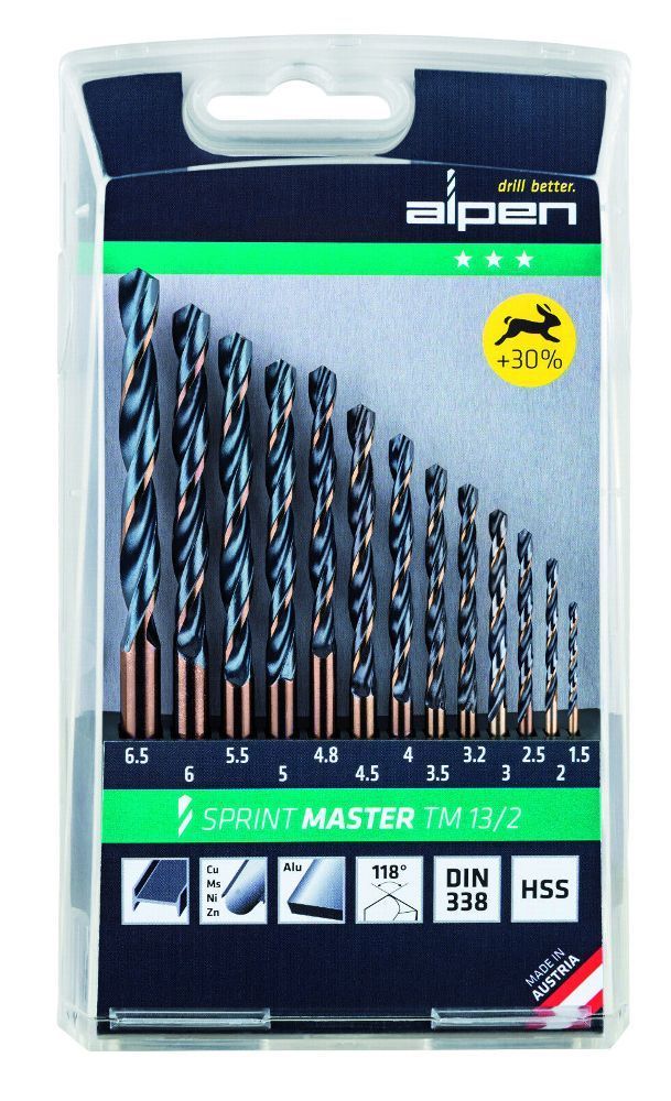 Spiralbohrersatz 1,5 - 6,5mm HSS flexibel, 0,5mm steig. , für Stahl, NE-Metalle