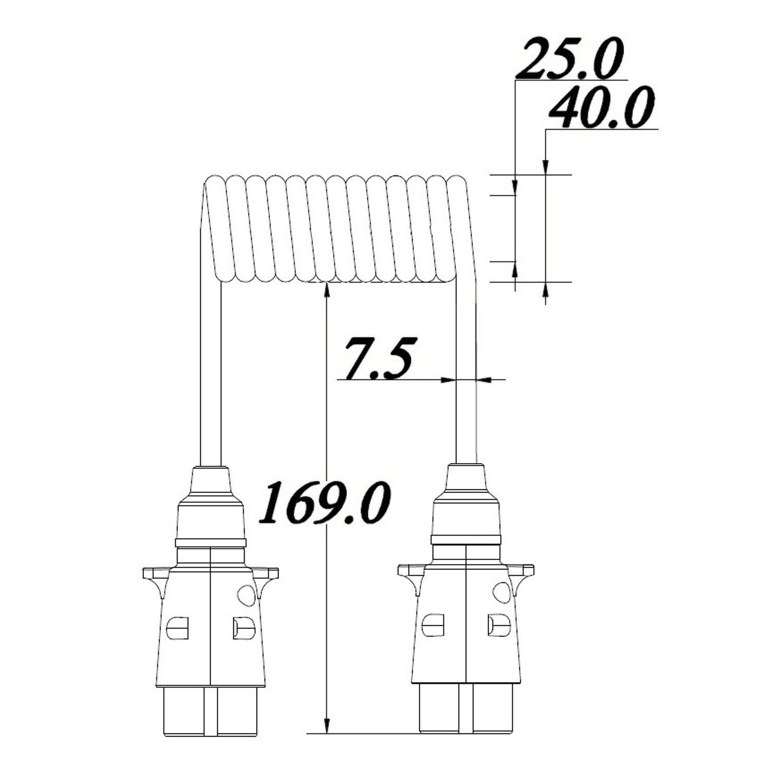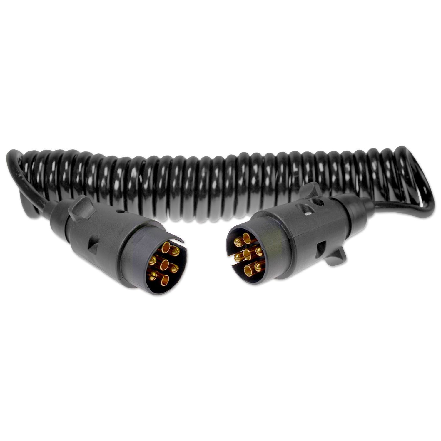 Spiralkabel | 7-adrig | 7x0,5mm² | 12V | Stecker zu Stecker | 3 Meter