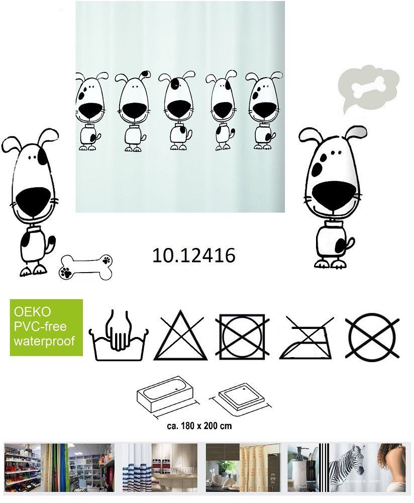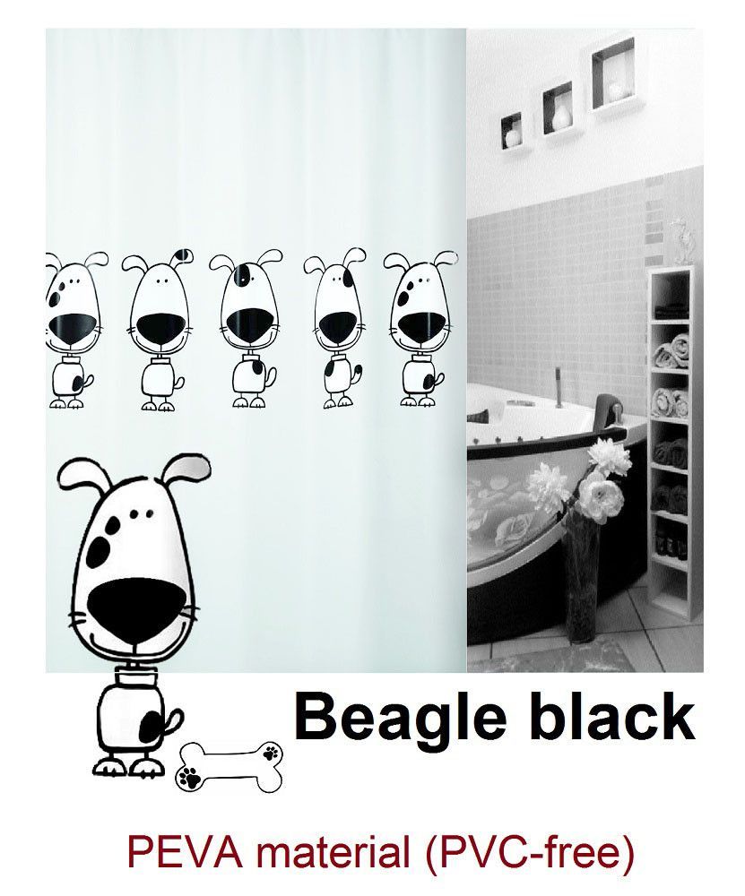 Spirella Beagle Black Hund Duschvorhang 180 x 200 cm. 100% PEVA Schwarz Weiß