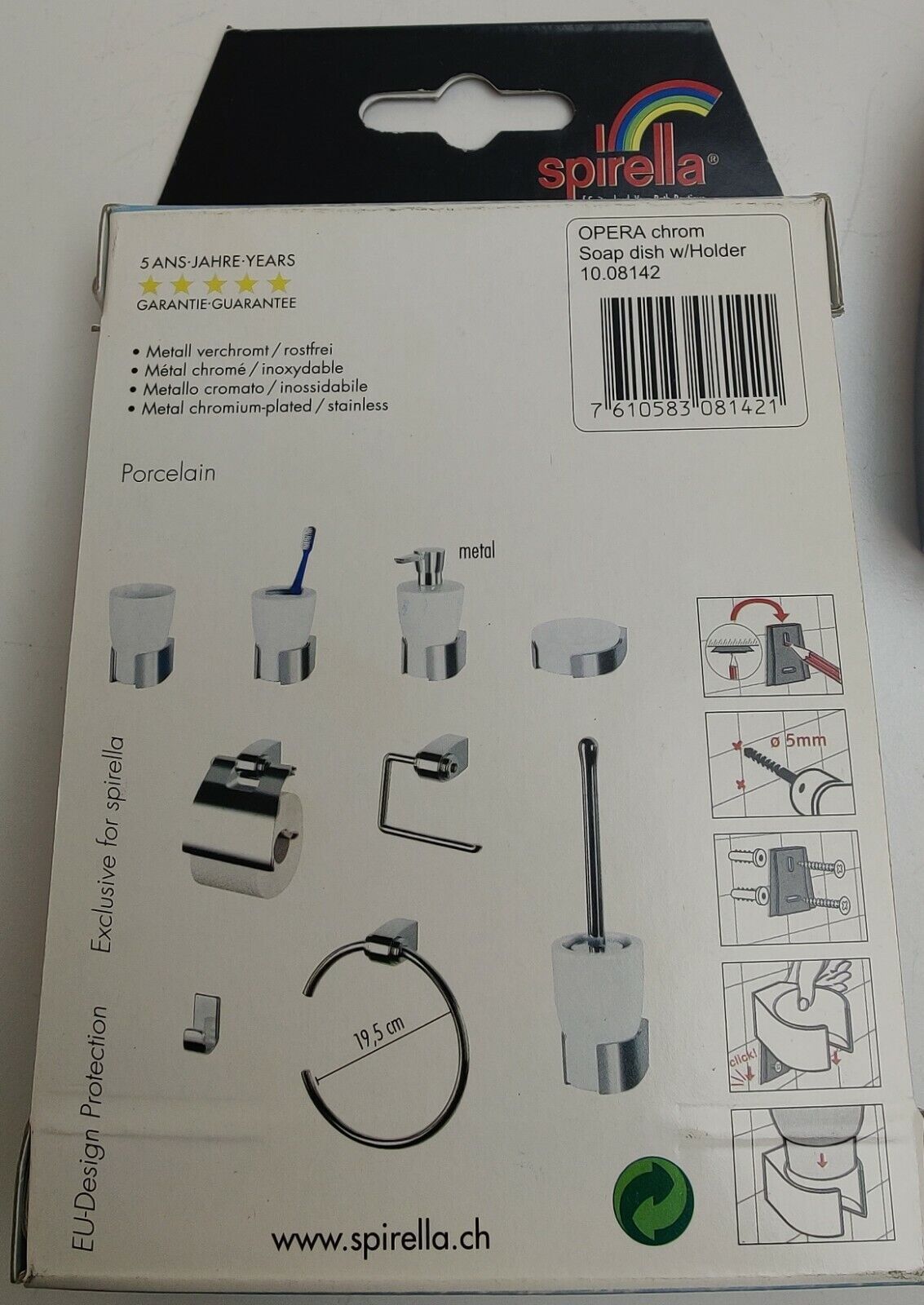 Wir bieten an: Spirella Seifenschalen-Halter Opera chrom 1008142 Modell: Opera Maße: Breite 10,5 cm Tiefe 13 cm Höhe 4 cm Artikel-Nr.: 1008142 Material: verchromt Farbe: Silber Beschreibung: Sehr schöner Spirella Seifenschalen-Halter der Linie Opera. Für die Wandmontage geeignet. SOFORT LIEFERBAR! I... Mehr