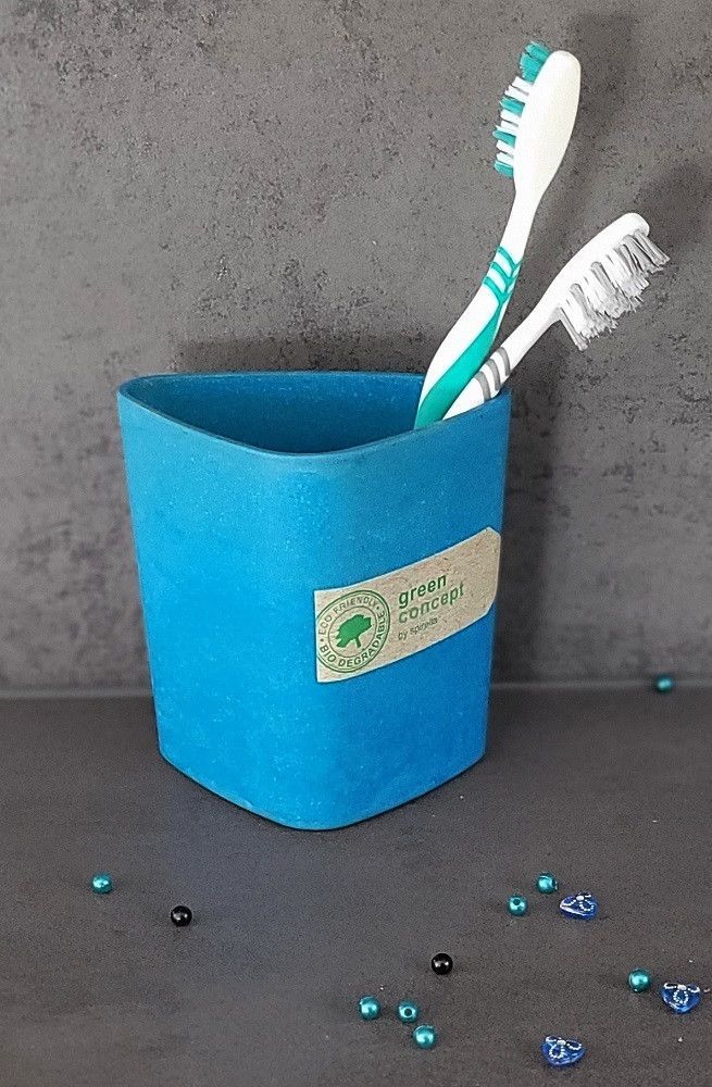 Spirella Trix Eco Badset Acqua Blau 5 Teilig Dreieck-Design. aus Bambushäcksel