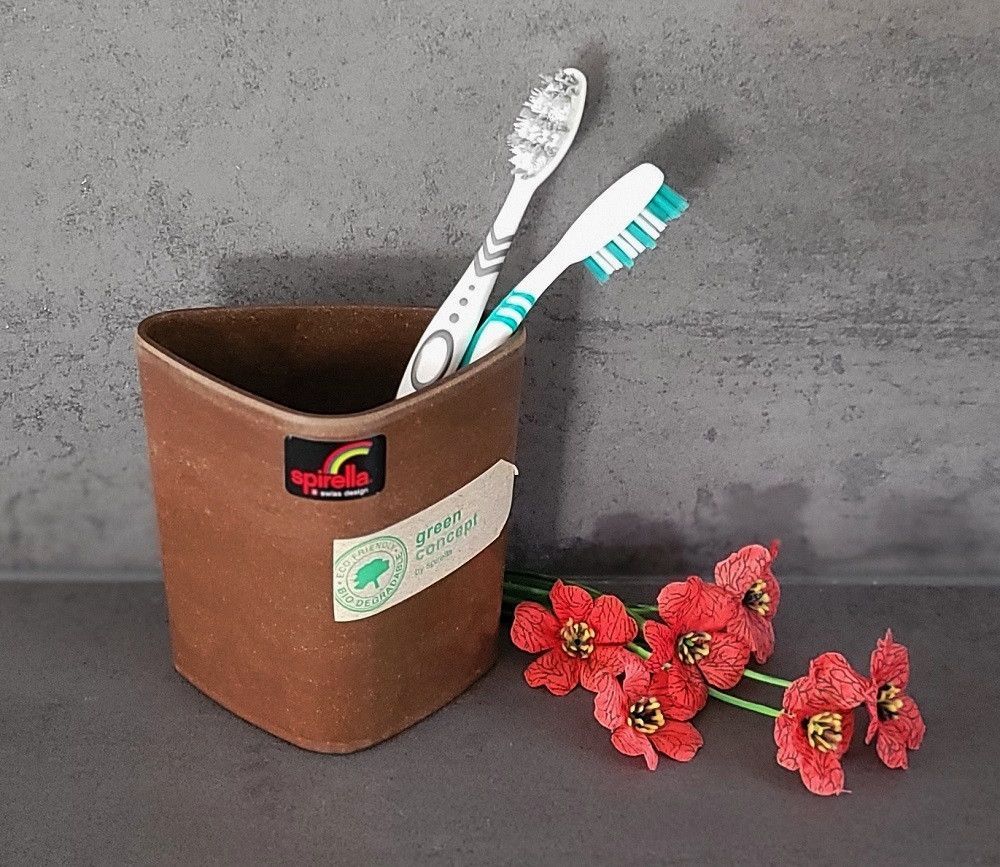 Spirella Trix Eco Mundspülbecher Zahnbecher Braun Dreieck-Design. Bambushäcksel