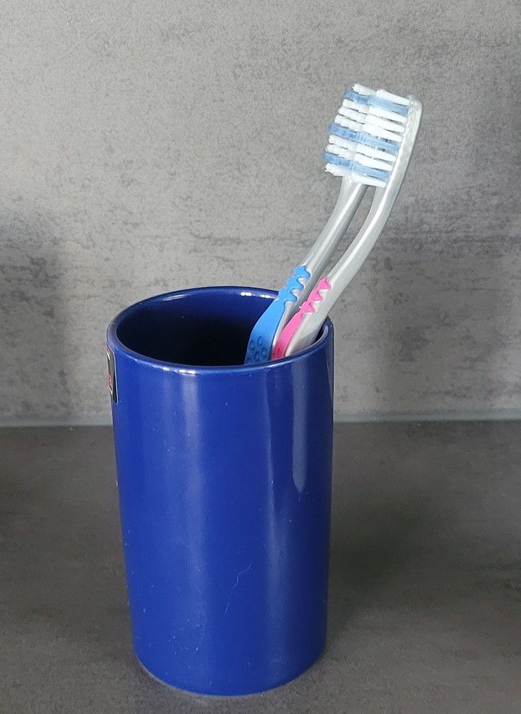 Spirella Tube Navy Blau Zahnbecher Steingut mit glänzender Oberfläche