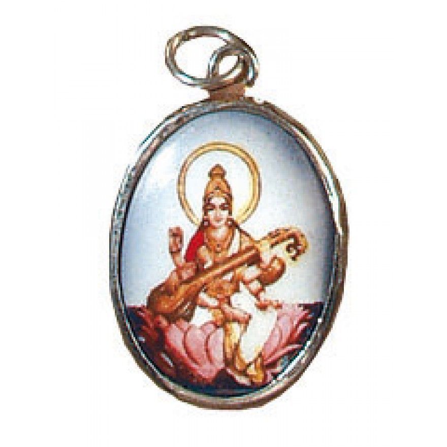 Saraswati Spiritanhänger Saraswati Edelstahl emailliert Kettenanhänger Hinduismus