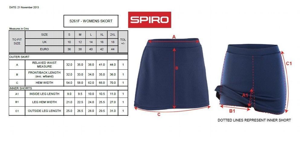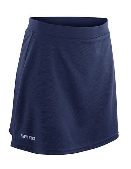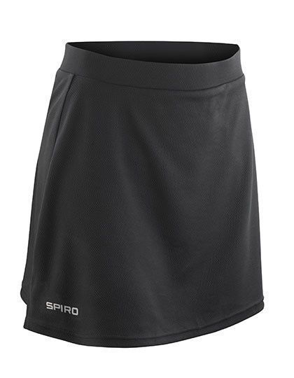 Ladies Skort Winddicht und atmungsaktiv Schnell trocknend Flatlocknähte an den Seiten Gedrucktes, reflektierendes SPIRO-Logo Integrierte Sport Pant Flacher, elastischer Taillenbund Seitenschlitze Waffelgewebe Rock: 100% Polyester Innenhose: 95% Baumwolle 5% Elasthan Grammatur in g m² 1 210 g m&