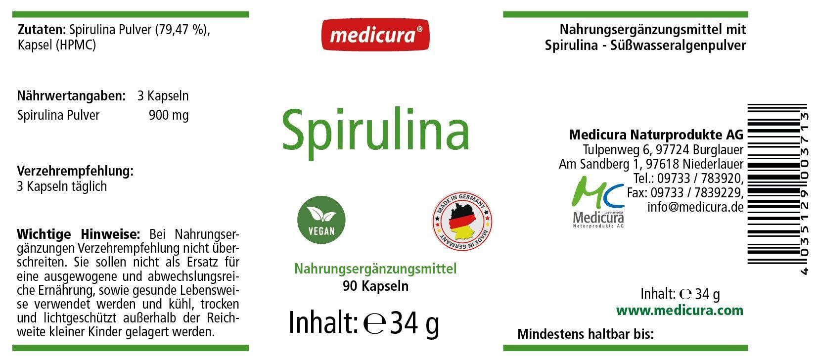Medicura Spirulina 300 mg - 90 Kapsel