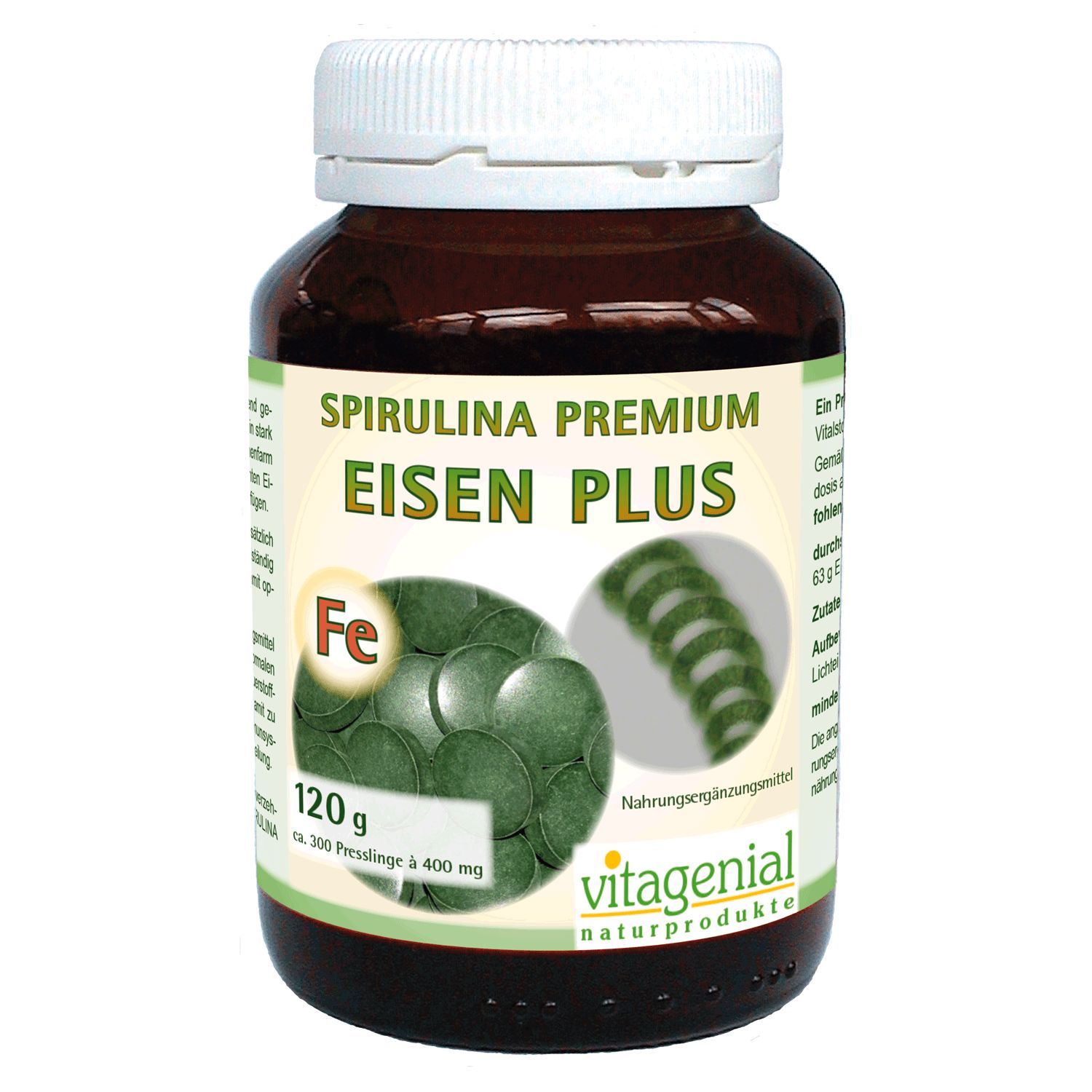 Spirulina Premium Eisen Plus, 300 Presslinge - Vitagenial by Biogenial