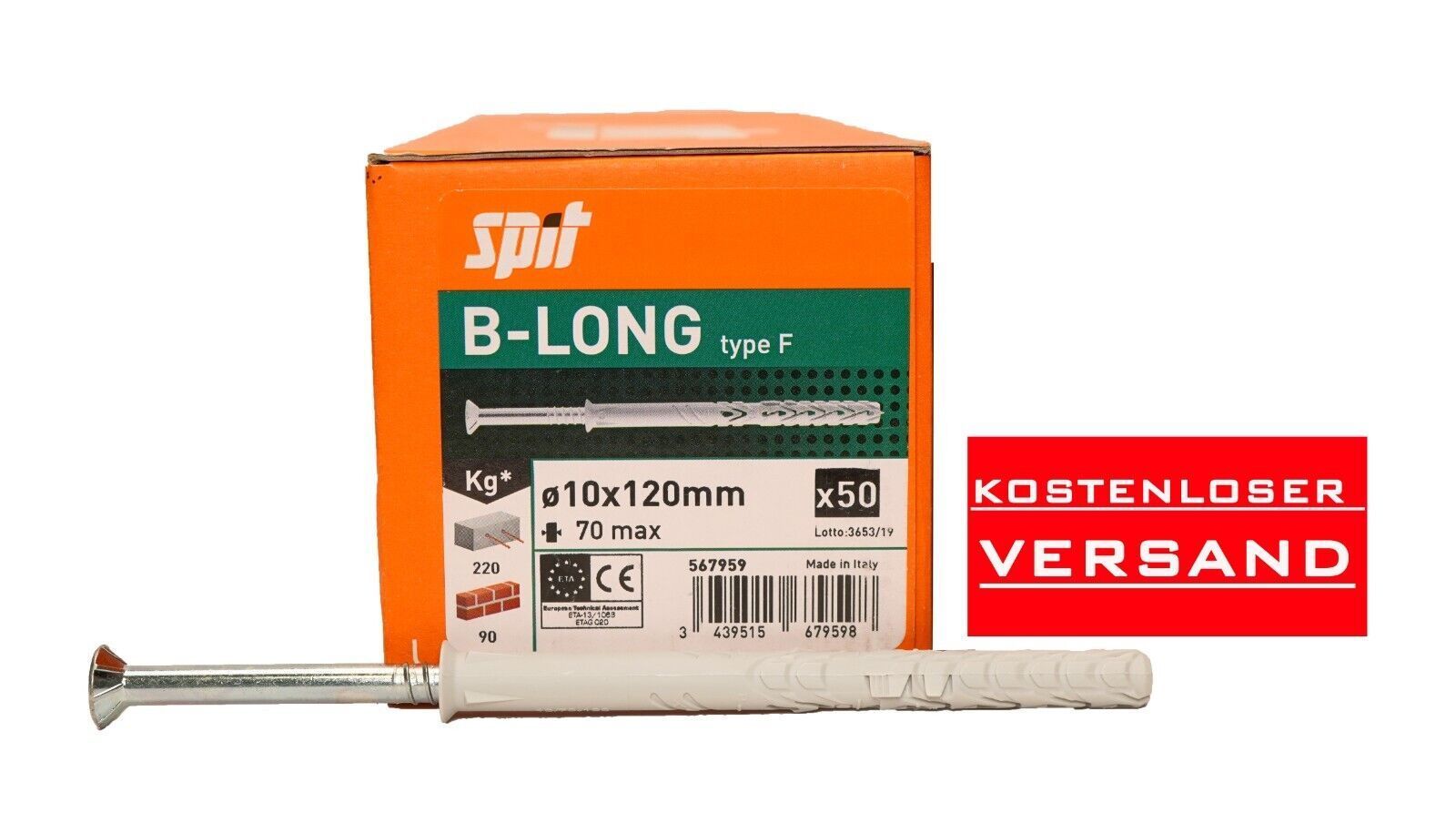 SPIT Spit 50 Stück Dübel Senkkopf ?10x120/70 F TX 40 B-Long Type F Befestigung
