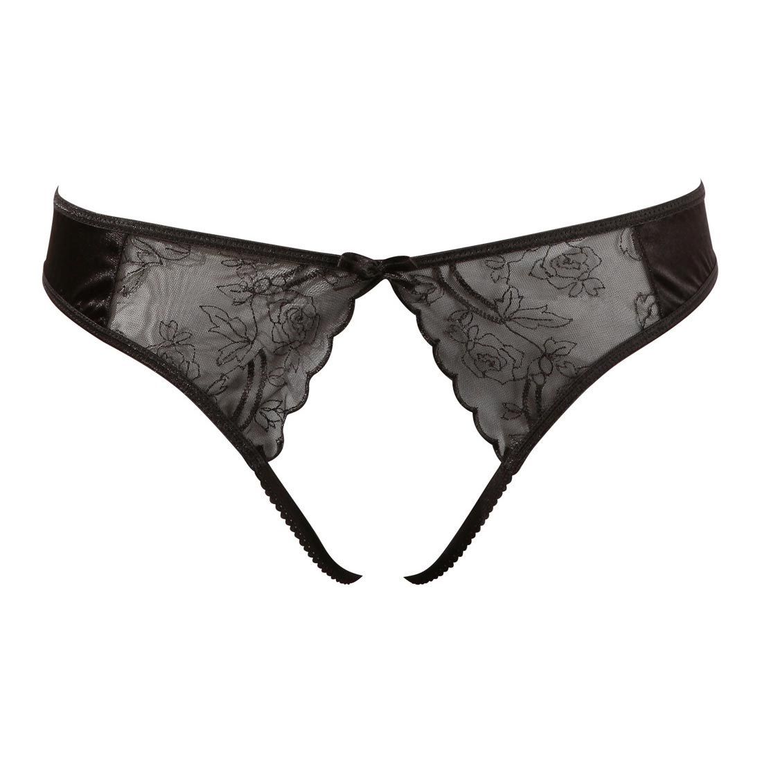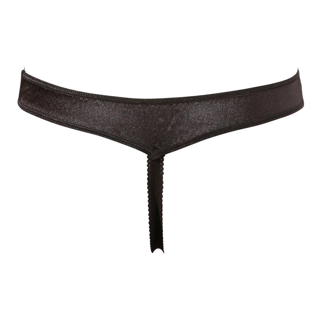 Spitzen-String S M L XL XXL Schritt offen schwarz Tanga Satin Dessous "Moni" E13