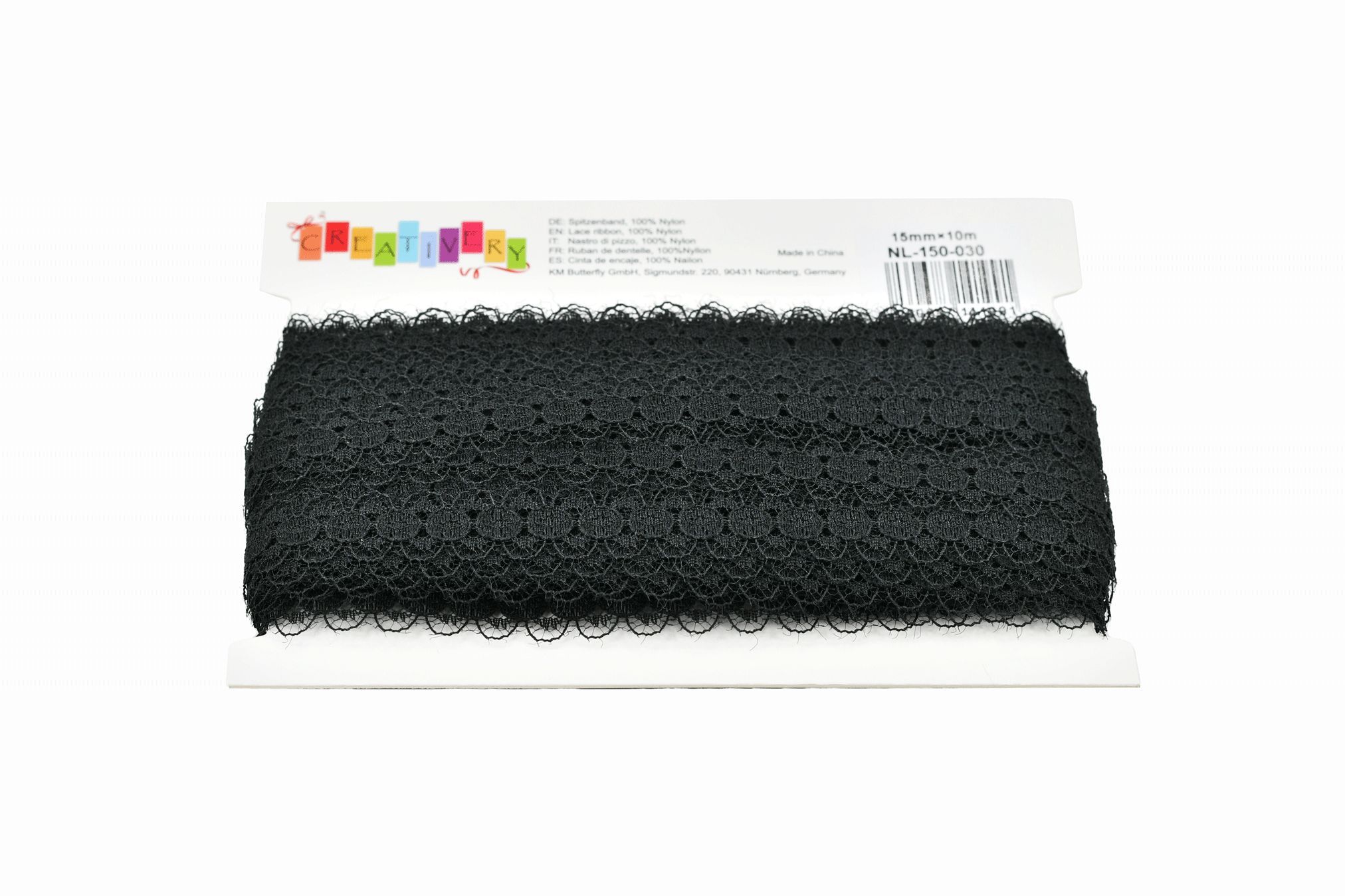 Spitzenband 15mm x 10m Schwarz